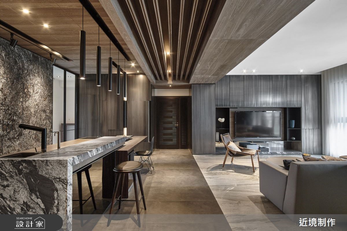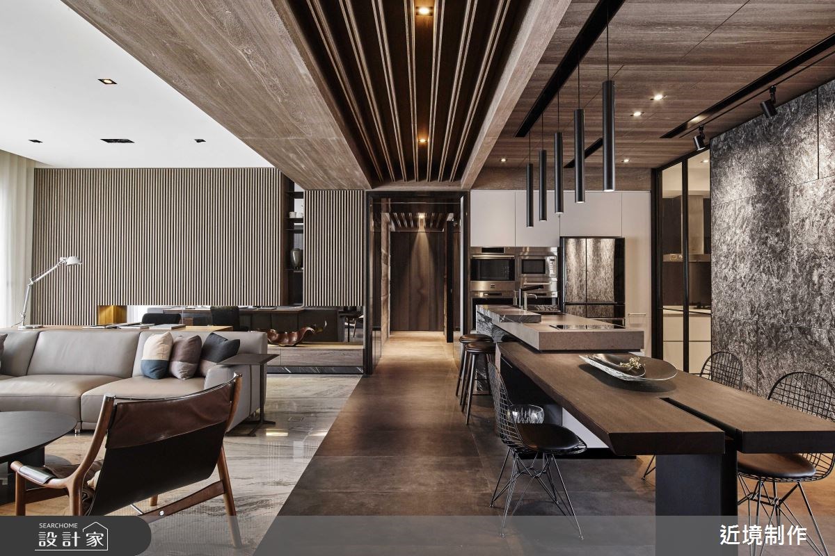 設計師援引老木、鏽鐵作為空間媒材,演繹時光流逝中的自然風化,藉由軸線、建材的交織錯落,承載著家人間共同的感動與回憶,快跟著小編一起來看看吧! 在空間軸線佈局上,給予穿透的動線,凝聚迴遊與逗留的脈絡,在水平與垂直的維度中,以木皮締造天花的溫潤質樸,凸顯石材主牆的天然肌理,型塑空間溫度與立面焦點;同時依循居住者需求,重新定義場所精神,將原有的中廚弱化,強化餐廚核心的中島,藉此凝結家人間密切的情感,在中島設計上,則刻意以異材質錯置、交扣組構成量體架構,並間接達到劃分客廳與餐廚關係的作用,且對應上方天花,亦可見到格柵的延伸設計,做出引導視覺的線性,猶如時光穿梭意象,並規劃鍍鈦門拱,作為公區進入私區領域的交界轉換,讓迴廊揉合著未來感與復古氣息,刻劃歲月的路徑。 小編的最愛 空間運用量體錯疊、天花板高低錯落、材質之間相互交錯等,劃分出每個場域的主題,藉著「時間的皺摺」呼應整體設計,記錄家人、空間、時間的關聯性。