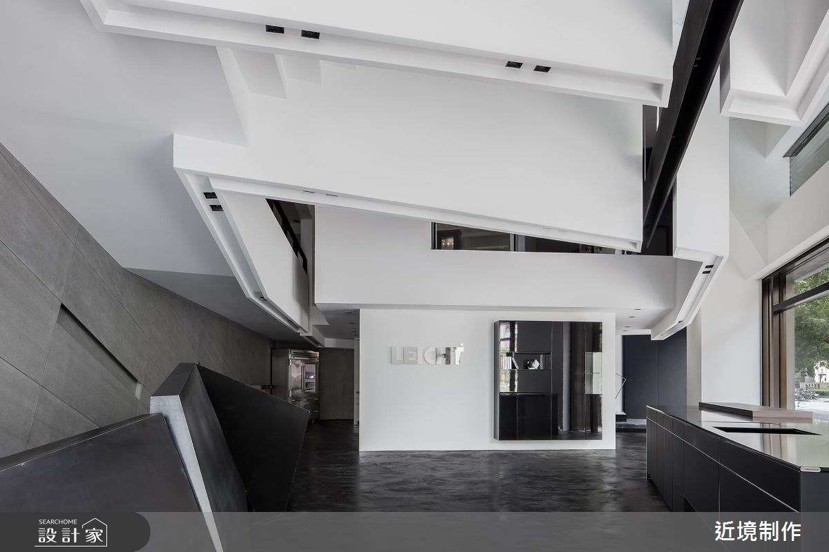 近境設計團隊取材自禪宗大師青原行思的「參禪三重境界」--「參禪之初,看山是山,看水是水;禪有悟時,看山不是山,看水不是水;禪中徹悟,看山仍然是山,看水仍然是水。」提出「若山」的設計概念,順應梯型基地條件,融入室內建築手法,讓商空設計轉化為立體空間體驗,快跟著小編一起來看看吧! 設計師於入門處循序規劃動線,型塑由窄仄至朗闊的洞窟意象,一路迎接敞亮如沃野的展示區域,讓人窺見空間與商品展示的完美結合,且將原先不方正的梯型空間做出錯層處理,切割為四個交錯的樓層,轉化為有如山間的立體體驗;同時顛覆傳統的材質運用,用黑鐵、盤多魔、染黑木皮、石材、水泥板等現代素材,轉化白、灰、黑的分明層次,搭配室內建築手法建構山壁造型,體現山水畫的墨色意境,創造趣味感十足的觀覽體驗;而燈光營佈部分,同樣迎合室內建築造型的安排,加入現代俐落的幾何線條,模糊掉直觀的天地壁界線,讓空間美感倍增! 小編的最愛 三樓,刻意打開空間破口,可由上往下窺見一樓展示空間,在鳥瞰的特殊情境中顛覆傳統,讓人有感登泰山而小天下的快意!