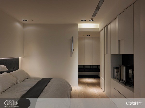 從加拿大籍詩人歌手李歐納.柯恩( Leonard Cohen )的〈渴望之書〉汲取設計靈感,近境制作唐忠漢設計師將此 17 坪的居家空間演繹成一首等待被閱讀的詩,以井然有序的結構安頓所有設計元素;然而這些元素所組成的空間就像是未竟的詩意,企盼著居住者注入生活的節拍,在人與空間的互動之間真正寫就「家」的感動。 走進 17 坪大的空間中,以開放式手法打造而成的寬敞格局,首先予人自由愜意的第一印象;而此開放式的空間裡,更有著豐沛流動的詩意與隱喻等待著解讀。主要的公共區域由餐廚、書房、客廳三者複合而成,沒有累贅的牆面區隔,設計師以流理臺、吧檯、書牆、書桌、沙發等機能量體構成空間元素,讓格局的定義自然湧現。 餐廚區與書房比鄰而立,一則料理口腹餐飲的需求,一則豐富心靈糧食的渴望,彷彿隱喻著家屋同時能富足居住者的身與心。而整面琳瑯滿目的書牆則與簡約質樸的純白客廳主牆對面相望,形成巧妙的對比,同時也讓空間取得視覺上的平衡效果。白牆下方的壁爐穩穩嵌入深色的石材底座,如同在白紙上安放的一座紙鎮,賦予整體空間平和穩重之感。 傾身探進白牆後方的區域,設計師將此處設定為主臥室,並且以精品櫥窗的概念構築衣櫥設計,讓私人領域中也能享有觀看與展示的樂趣。相對於淨空心靈的睡眠空間,另一側走道則通往清潔身軀的衛浴空間,以紋理豐富的石材與餐廚區域形成連結,並與客廳、書房、主臥相互對比,讓空間像是一首結構井然的詩,富有無限解讀的可能性。 小編的最愛 如同隱藏在詩中的韻腳,設計師不只賦予空間完美的詩性結構,細部的巧思更帶來豐富的餘韻。例如直接以天花與牆面之間的落差構成窗簾盒的極簡設計,以及高度延伸嵌入燈溝的書櫃,再再塑造出無界限的空間感,帶來更多曖昧的詩意想像。