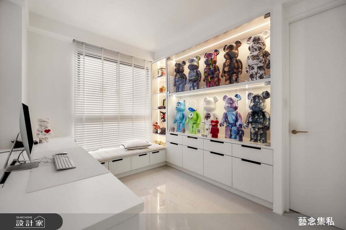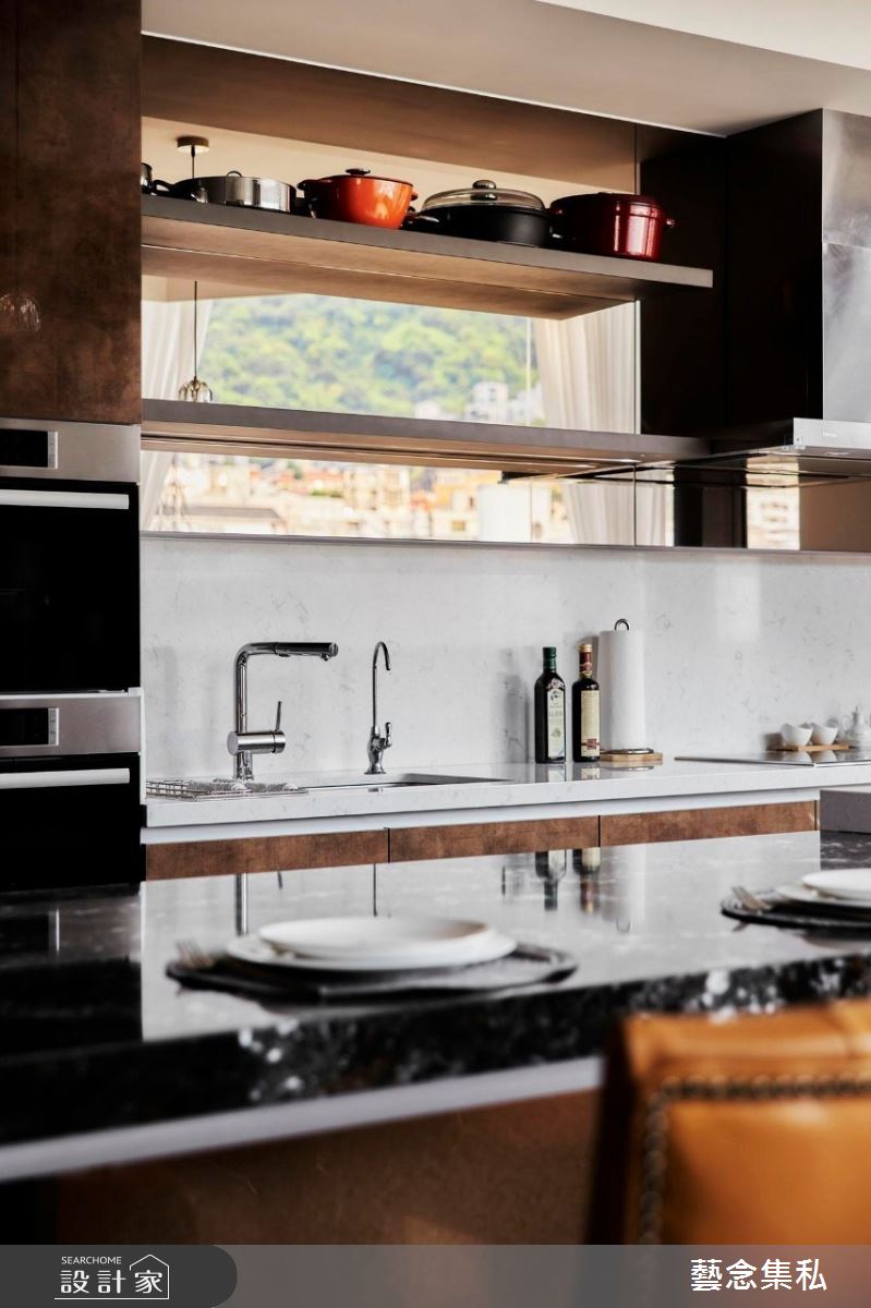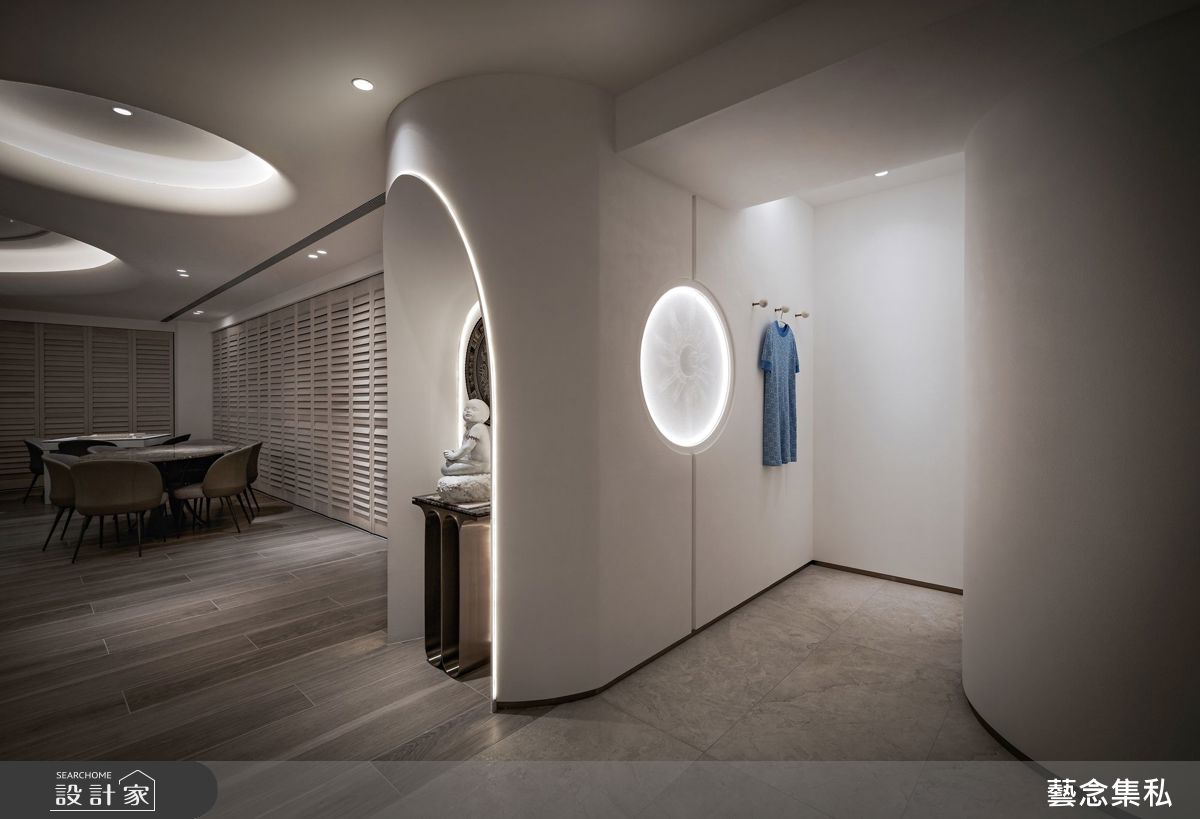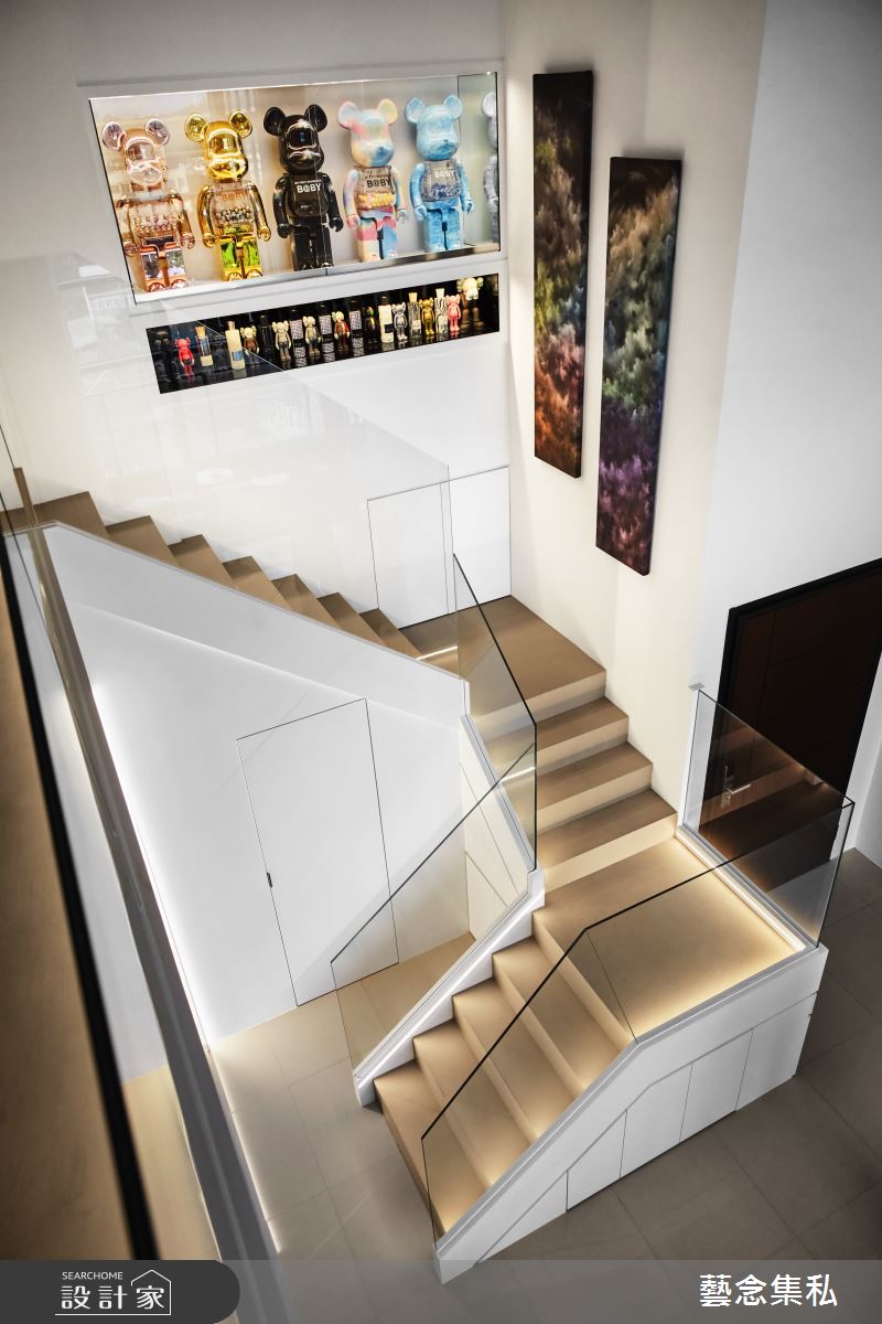 藝念集私空間設計以乳膠漆、六角磚/蜂巢磚、花磚、壁紙、石英磚/拋光石英磚、不鏽鋼、鐵件、烤玻、烤漆、系統板材、磁磚、水泥/水泥粉光、人造石、軌道燈、石材、噴漆、特殊漆的搭配應用,呈現現代風的風格氣息,將此間31.8坪老屋(41~50年)優雅詮釋成舒適愜意空間。