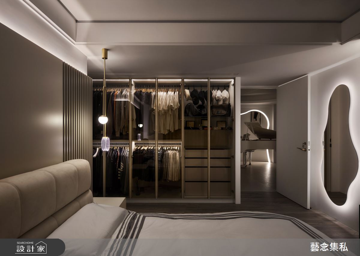 由藝念集私空間設計精心規劃的90坪四房住宅空間,家庭成員一共有2位大人。因應屋主需求,設計師運用現代風作為主軸,搭配乳膠漆、超耐磨木地板、不鏽鋼、鐵件、鍍鈦金屬、木作貼皮、烤漆、鋼刷木皮、系統板材、磁磚、樂土、線板、噴漆,打造全家人的夢想家居。