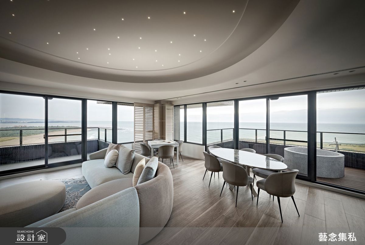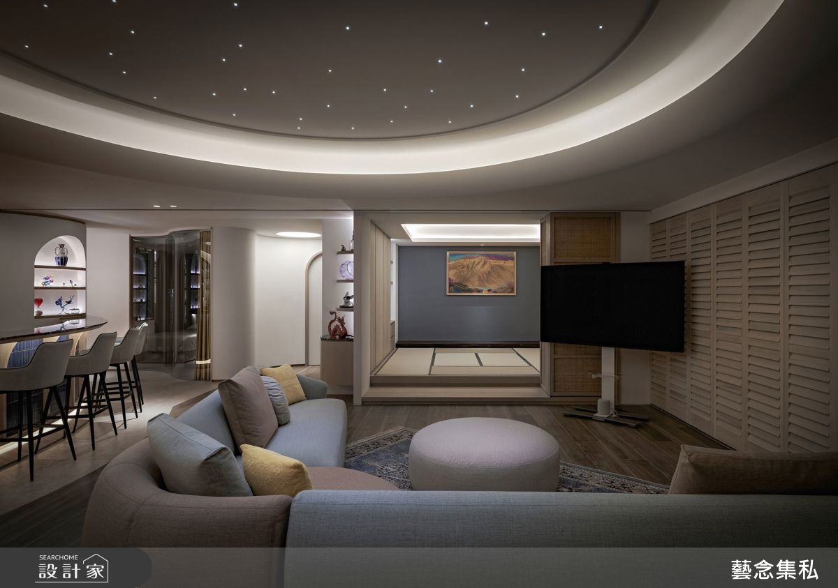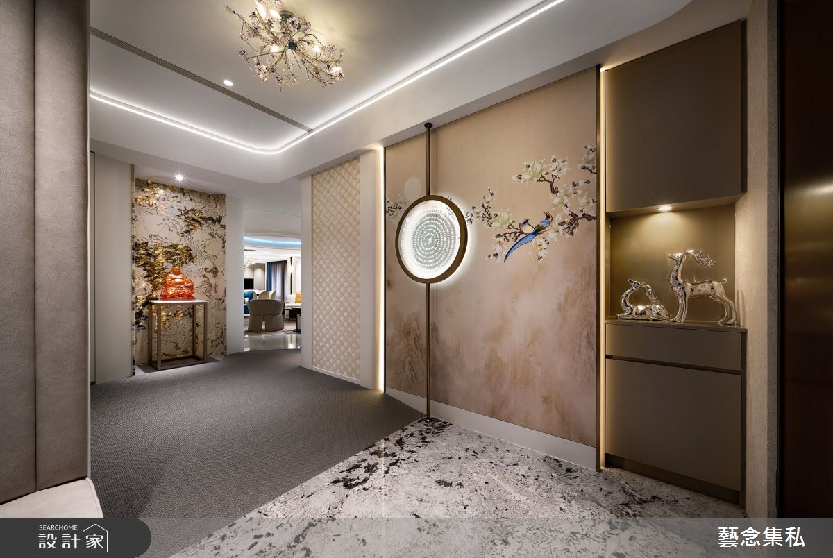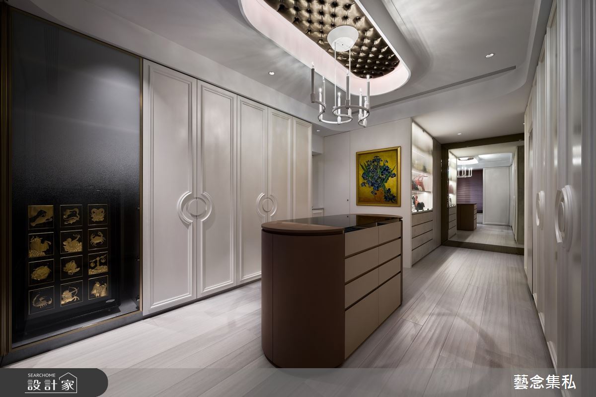 本案為藝念集私空間設計的135坪奢華風新古屋(10年以下)設計作品,格局為單層六房的居住空間。居住成員包含1位大人、2位小孩。全室建材的搭配,應用乳膠漆、壁紙、大圖輸出、海島型木地板、木紋磚、石英磚/拋光石英磚、不鏽鋼、鐵件、茶玻、烤玻、鍍鈦金屬、木作貼皮、烤漆、系統板材、大理石、磁磚、水泥/水泥粉光、人造石、賽麗石、皮革、石材、繃布、線板、噴漆、特殊漆,展現溫馨的居家氛圍。