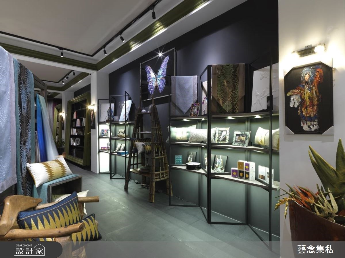 沿著大稻埕老街的騎樓走,近年來興起的老屋變身風潮仍持續燃燒,餐廳、藝廊、文創商店、酒吧等都隱身其中,而今,又加上了藝念集私空間設計繼台北健康路、台中、北京之後,第4間藝念集私的select shop兼辦公室,莫藍迪綠的內縮門框、麻繩車輪燈、層次鮮明的光源設計,尊重迪化街建築剪影,並且融當代時尚美學,在充滿歷史情懷的街道上,透露時髦氛圍,讓人在老街裡找著更多意外及豐富的趣味! 有別於一般的設計公司辦公室,一樓為以張紹華、黃千祝總監及兩位女兒的名字命名的select shop--DAPH's Home,有別於老街上的文創商店,販售的物件均是黃千祝設計師走訪世界各大城市,以多年來空間設計經驗訓練的敏銳美感,親自挑選的精品家飾,為襯托其魅力,延續莫藍迪綠為線板,以巨型裱框的方式,修飾老屋舊有的畸零空間,突顯戲劇性的效果,為展售空間增添趣味,同時更搭配訂製的鐵件層架及赭紅色的絨質窗簾,及訂製的黑鐵層架,讓新舊碰撞、中西交融,讓整間select shop擁有獨樹一格的個性! 而二樓的辦公室,跳脫舊有的工作空間樣貌,揮別制式的OA家具,為辦公空間注入美好生活的提案。以黑鐵結合弧形玻璃的開放式會議室,不僅突破場域一定要是方形的既有印象,同時順應長型街屋的型態,將空間在沒有隔間的狀況下,區隔成三個層次,分別為設計師工作區、會議室及行政人員工作區,讓整體空間既開放、自由。 小編的最愛 鄰近窗台的挑高區善用原有建物的優勢,同時以設計促使工作者之間有了距離,不再緊密毋可分,給予從事設計工作的設計師安靜思考的環境,明媚的陽光更在挑高區流轉,觸動心靈的幸福感。