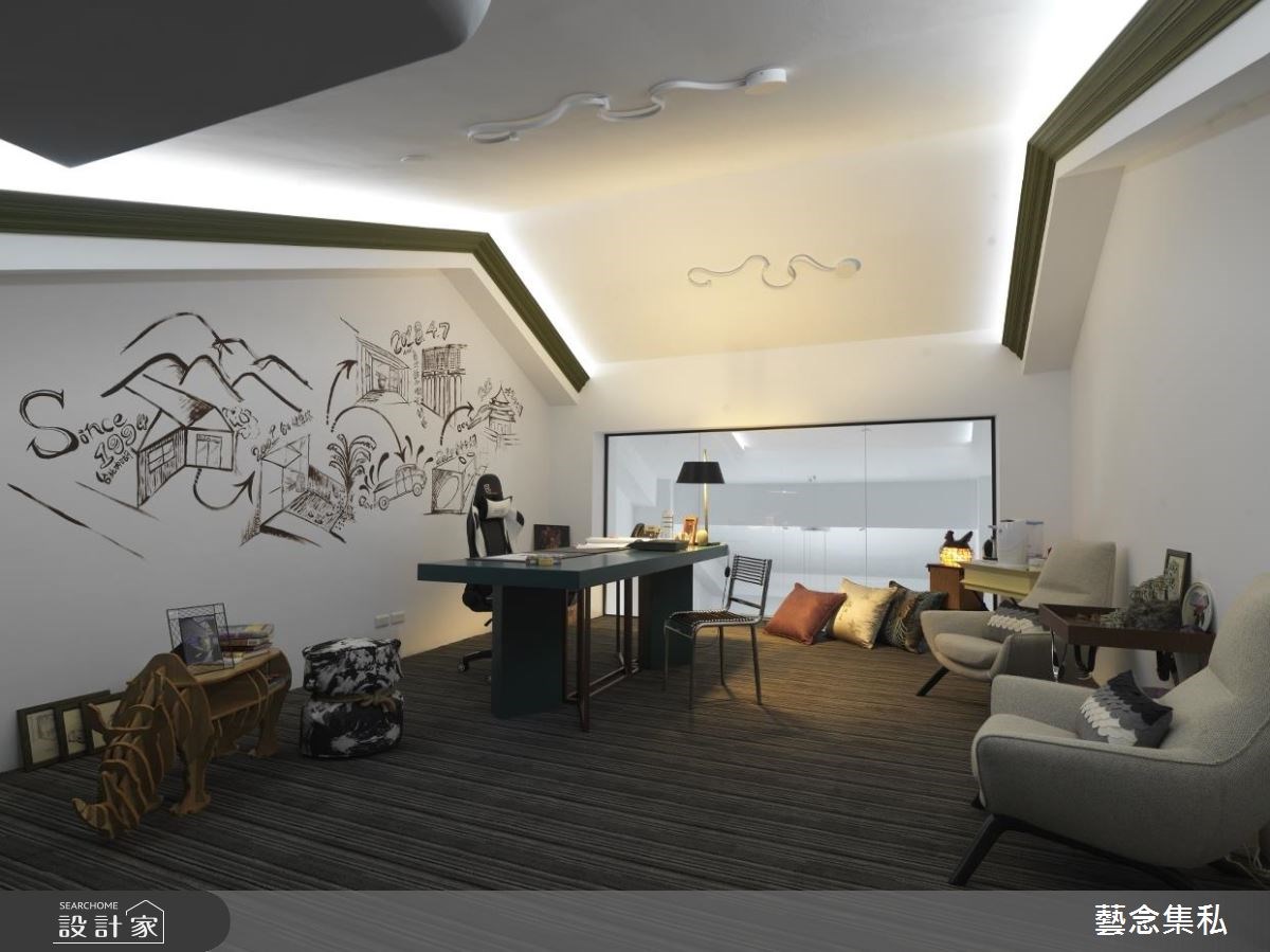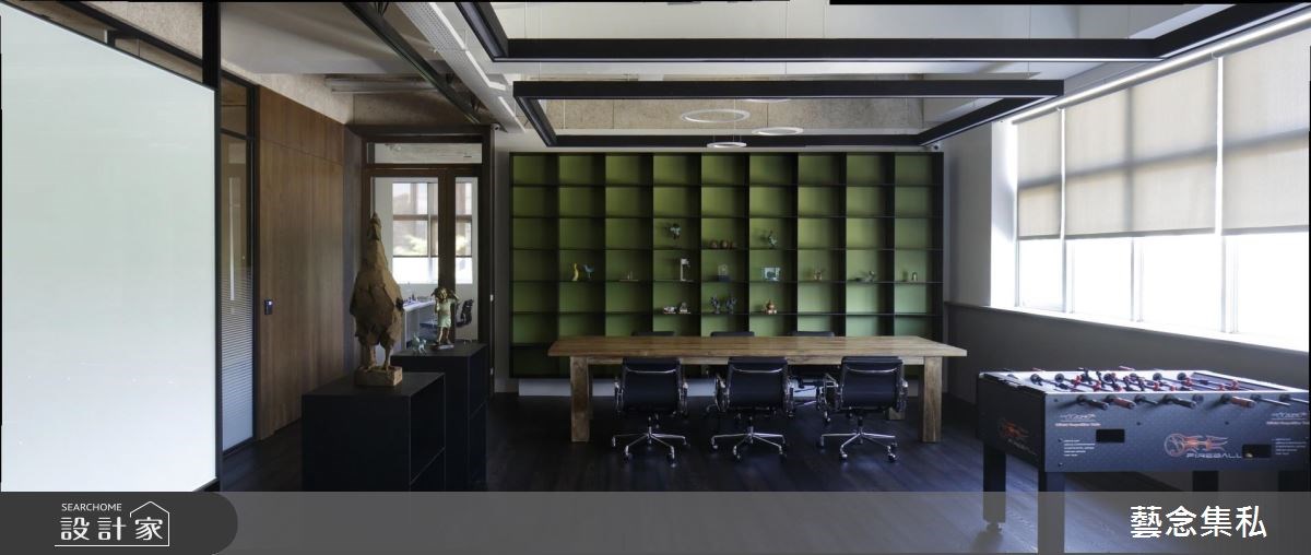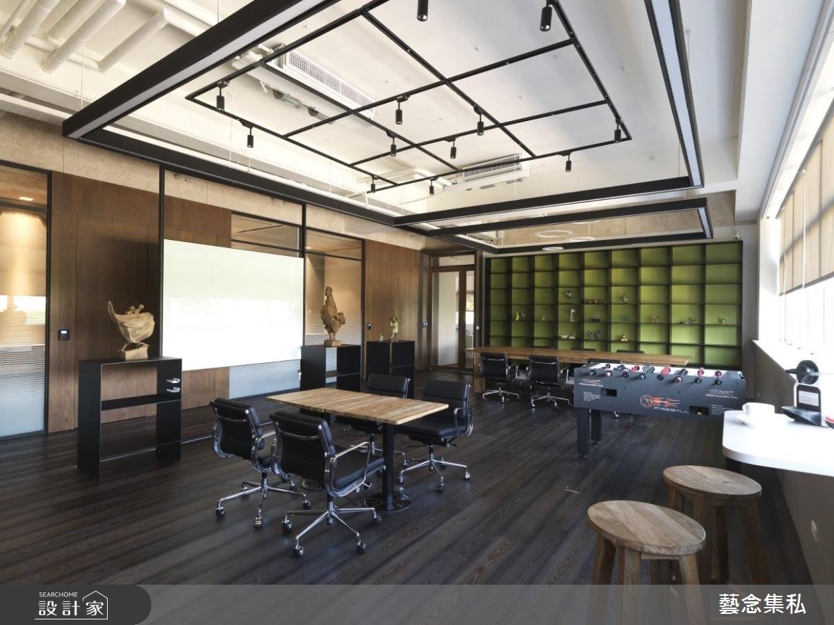 家是陪伴一生的親密夥伴。張紹華、黃千祝設計師多年前,曾為本案的屋主實現了與家人舒適所居的住所,更獲得其家人的認同與肯定,如今男屋主需要設計和規劃一處辦公空間,首選自然便是當初為他們一家設想周到的兩位設計師,在延續早先合作的默契下,慢慢將屋主的喜好與個性融於設計之中。本案順應屋主對不喜「銳角」的獨特要求,全室以弧形線條、物件加以修飾,點綴上屋主喜愛的木雕藝術品,及搭配大地色系和綠色等令人放鬆的色彩,以自然感為基底,實現業主對辦公空間的想像。 進門玄關處,裝飾著一幅業主與工作夥伴以齒輪為素材的共同創作,象徵彼此合作無間、業務不斷轉動,同時,天花板則善用粗糙的防潮建材,營造不做作的自然氛圍;除此之外,會議區中更點綴著業主喜愛的木雕藝術品,並拿掉隔間的阻礙,將空間關係開放、拓寬,擺上遊戲台,重新賦予辦公空間新的定義。 為實現屋主不喜銳角的性格,以有機線條修飾整體空間的銳角,業主的辦公室不僅訂製了有機線條的會議桌和圓弧吊燈,天花板則包覆防潮建材,搭配上草綠色的椅子,突顯自然、休閒的氛圍,軟化緊張的辦公氛圍。 小編的最愛 在開放會議空間,順著空間走向,有機弧線順勢營造而出可擺放冰箱、料理水槽、和擺放咖啡機的便餐台,也因此形成窗邊的角落咖啡館,讓人得以倚著陽光,在忙碌的日子裡好好放鬆,既化解了銳角,更為辦公場域累積出得天獨厚的幸福感。