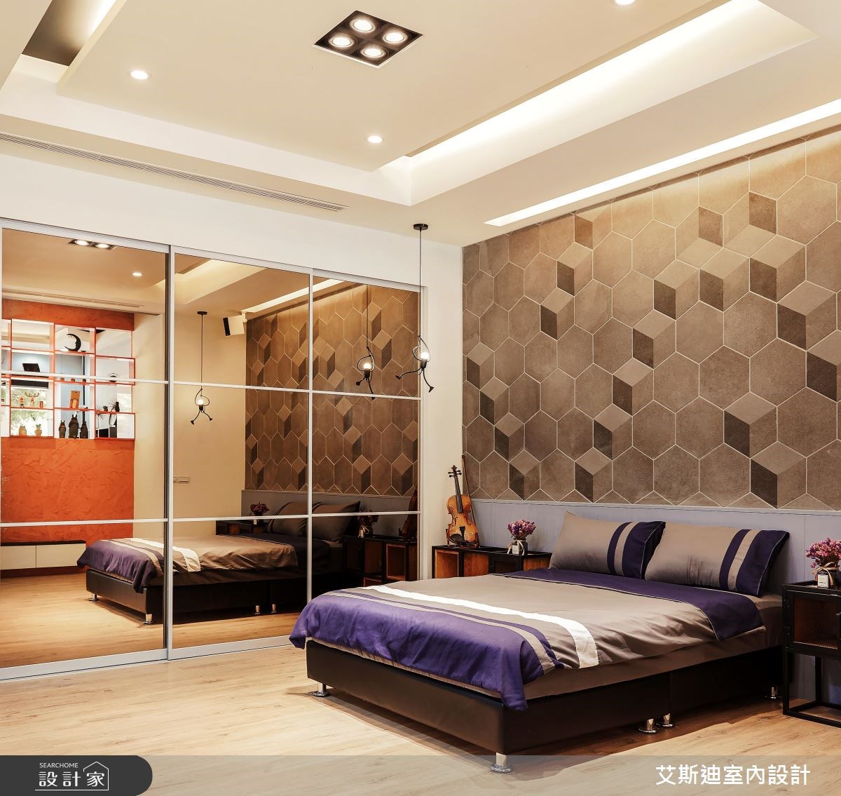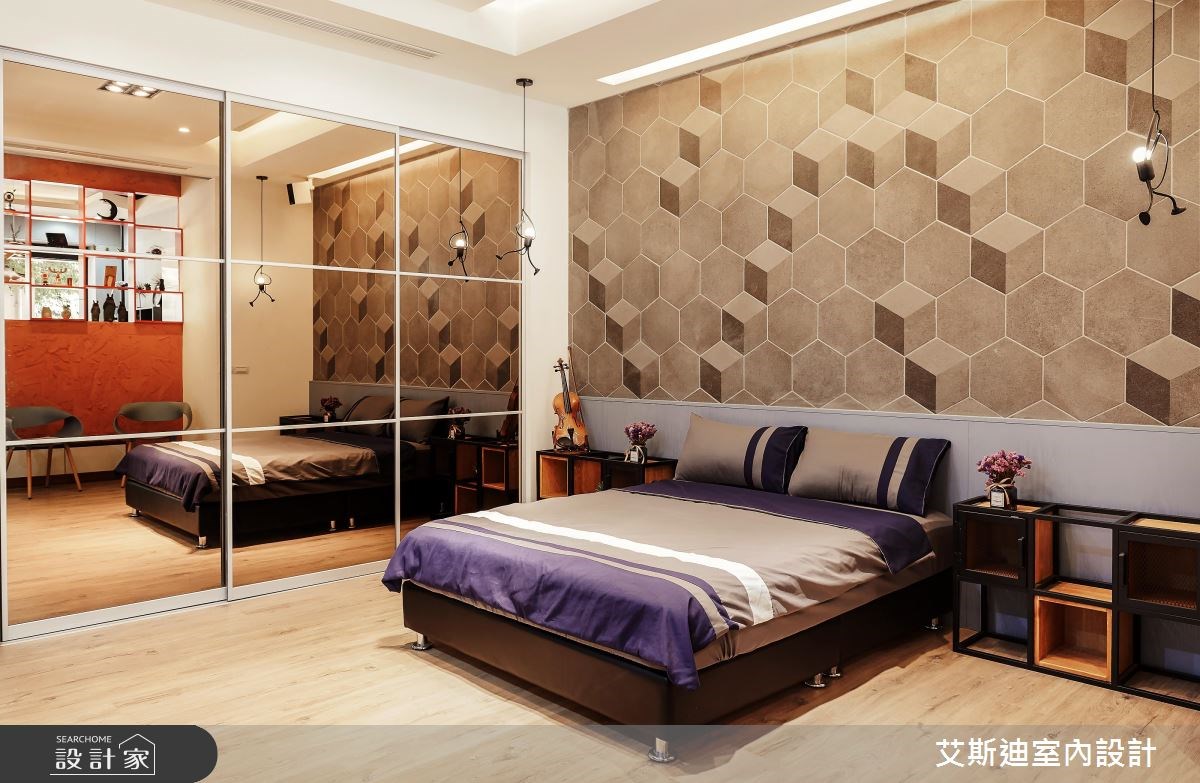 艾斯迪室內設計以乳膠漆、壁紙、超耐磨木地板、木紋磚、鍍鈦金屬、木作貼皮、烤漆、鋼刷木皮、系統板材、磁磚、人造石、軌道燈、繃布、愛克防火板、鋁框拉門的搭配應用,呈現混搭風居家氛圍,將此間60坪、六房、透天別墅、老屋(41~50年)打造成舒適愜意的家庭空間,完成2位大人、5位小孩全家人的夢想之居。