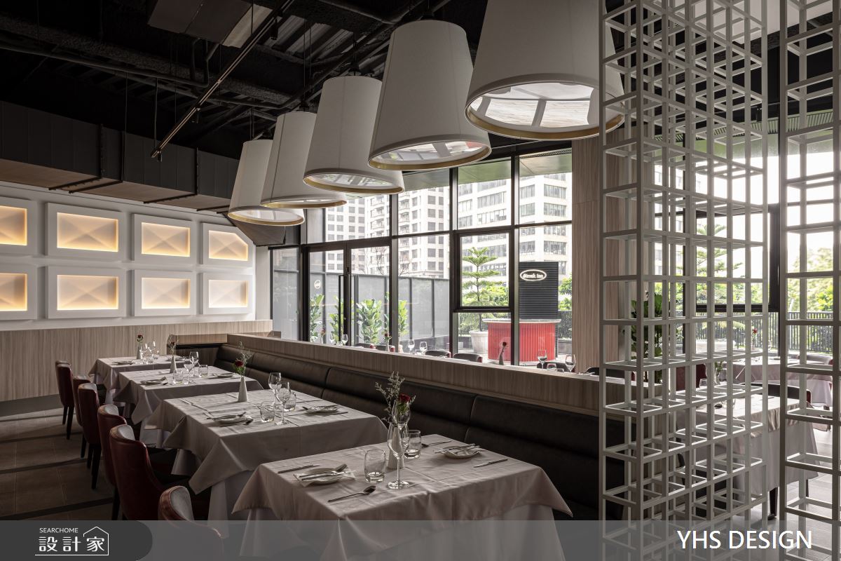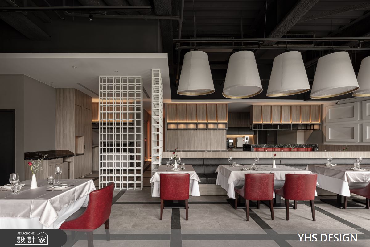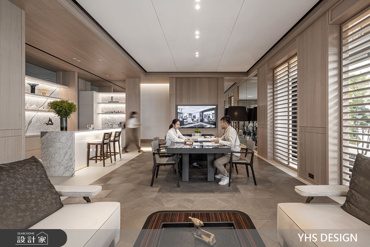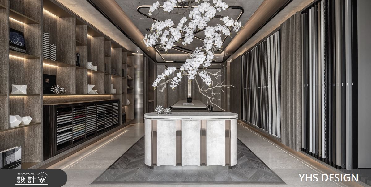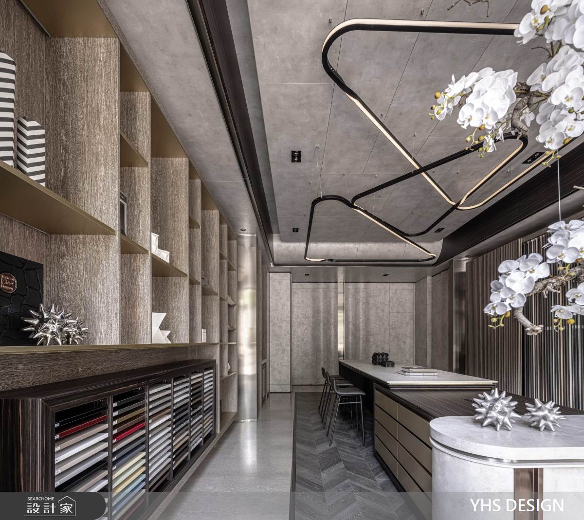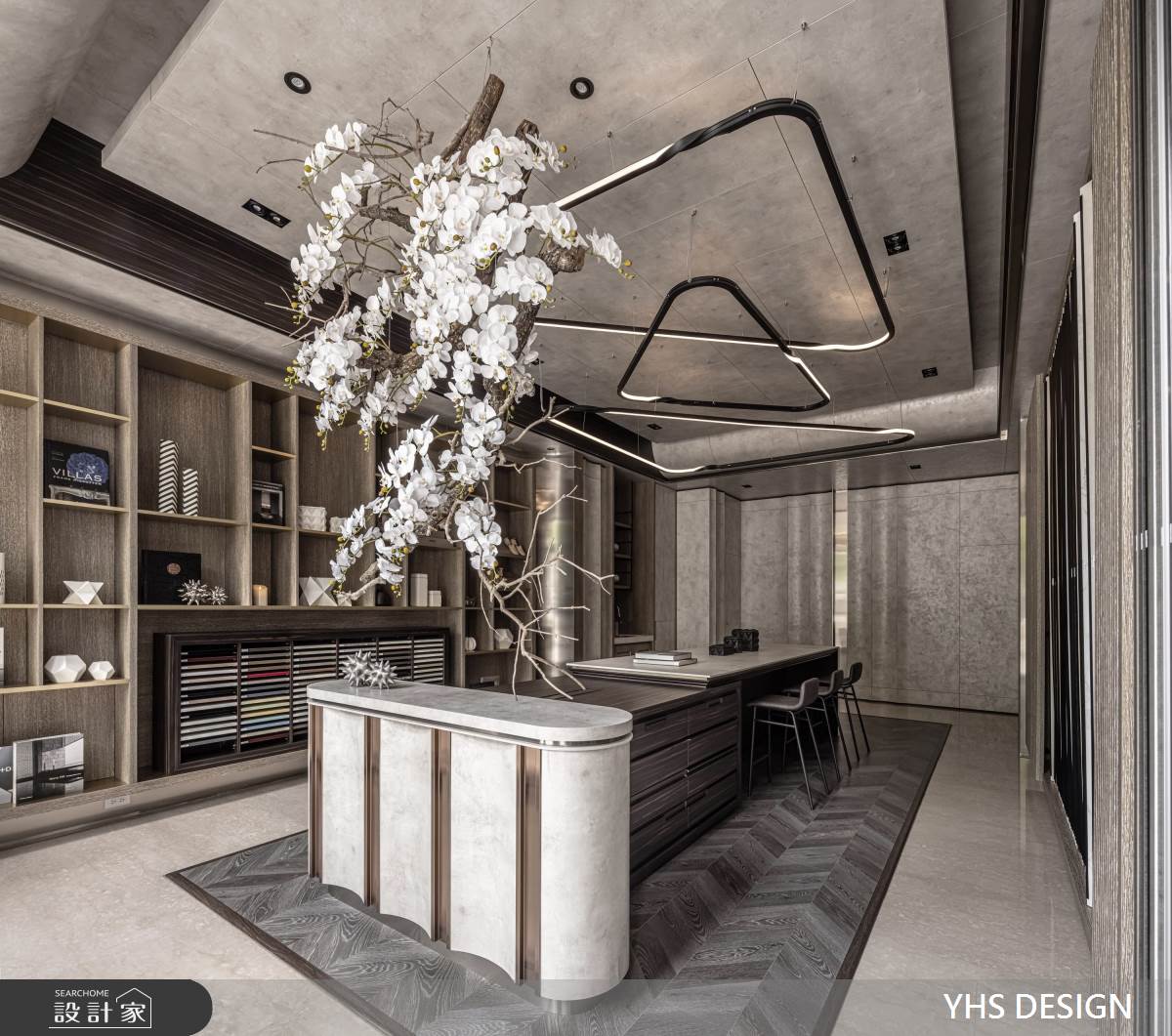 由YHS DESIGN設計事業精心規劃的166坪商業空間,因應業主需求,設計師運用現代風作為主軸,搭配建材金屬烤漆、木皮、玻璃、地磚、地毯、塗料、吊燈,打造精緻品味的空間氛圍。