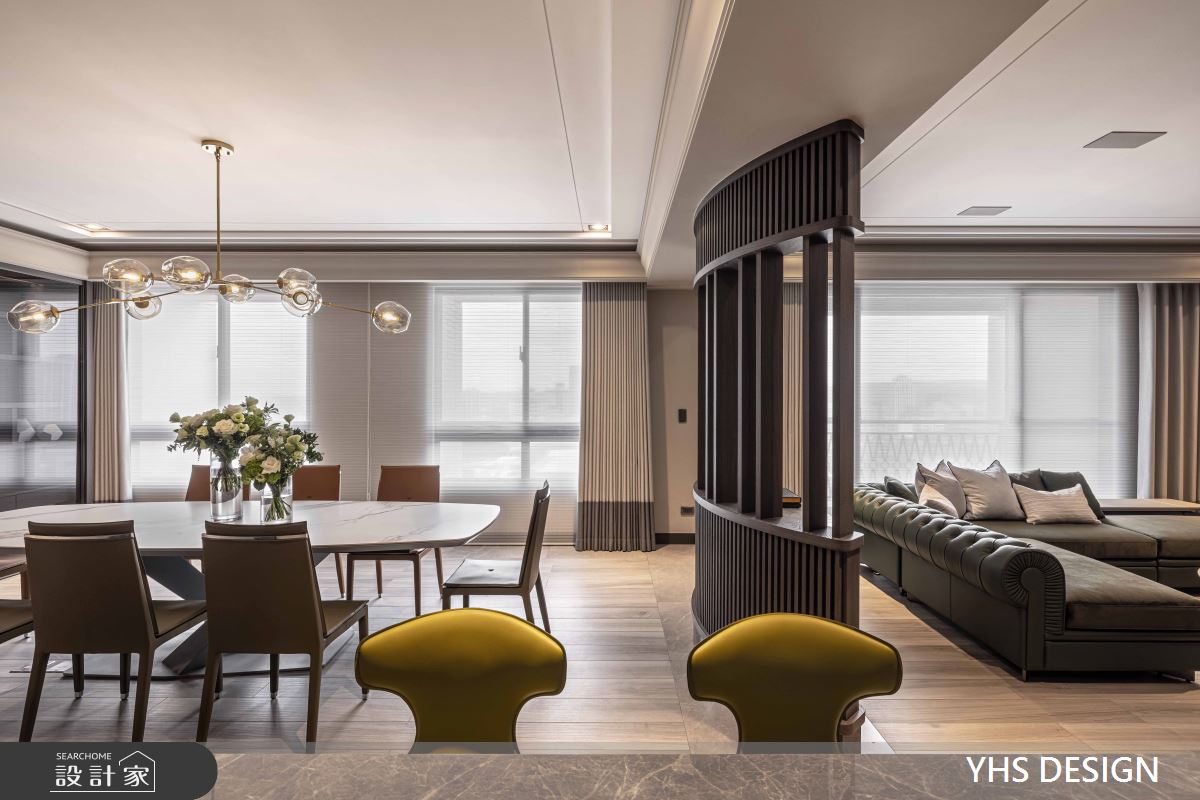 由YHS DESIGN設計事業精心規劃的100坪四房住宅空間。因應屋主需求,設計師運用新古典作為主軸,搭配壁紙、不鏽鋼、大理石、皮革、木皮、灰玻、鍍鈦,打造全家人的夢想家居。