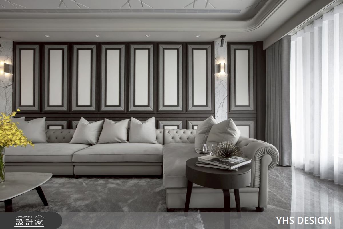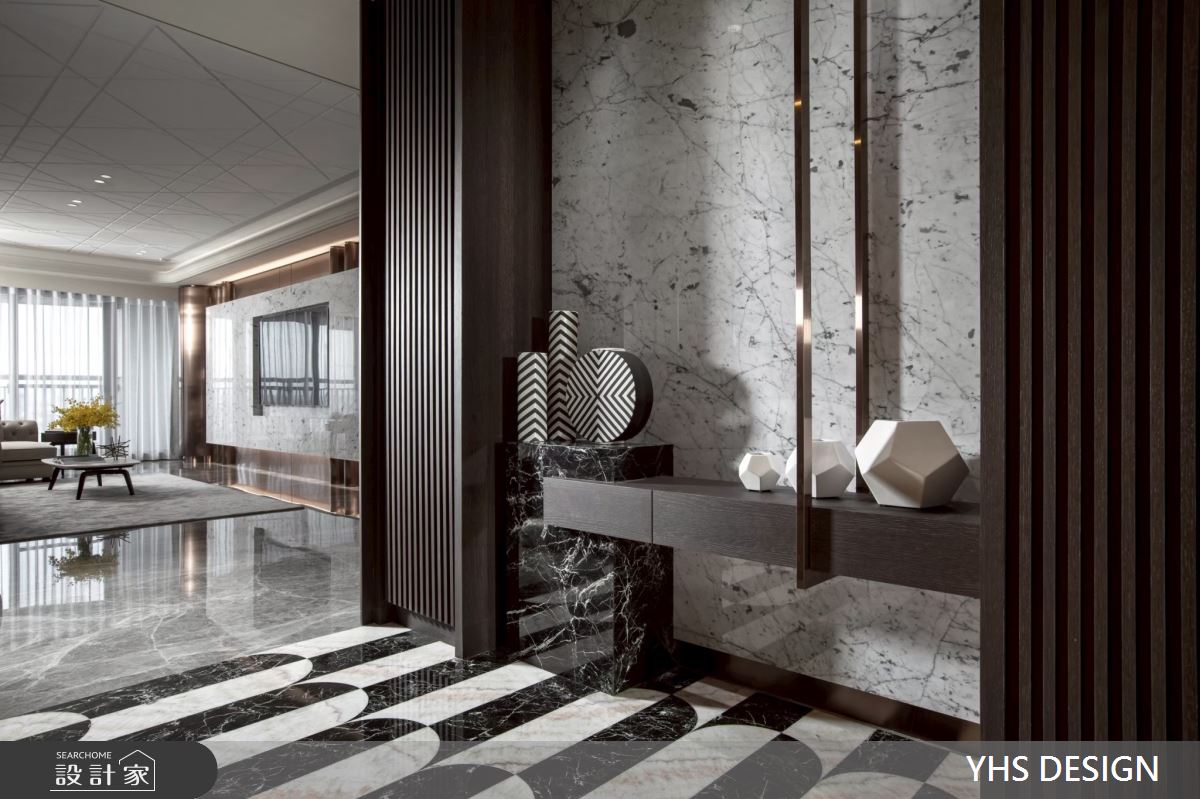 由YHS DESIGN設計事業精心規劃的100坪三房住宅空間。因應屋主需求,設計師運用新古典作為主軸,搭配大理石、皮革、黑網石、鍍鈦、木皮、黑玻璃,打造全家人的夢想家居。