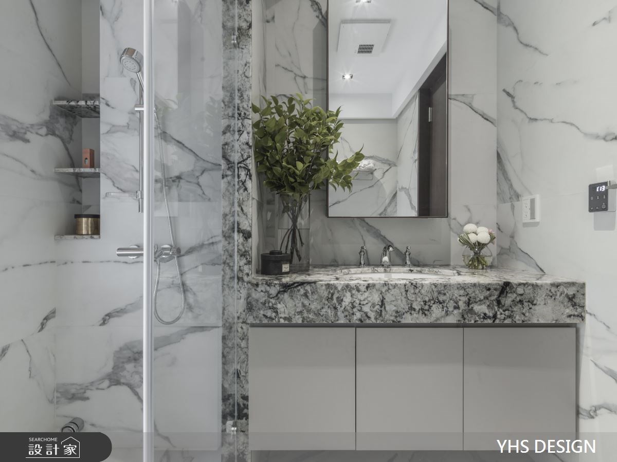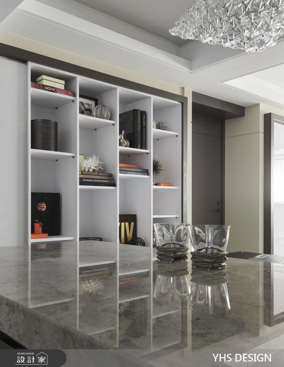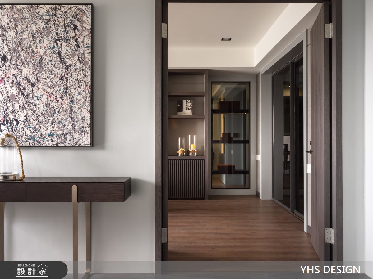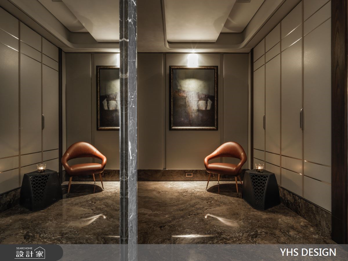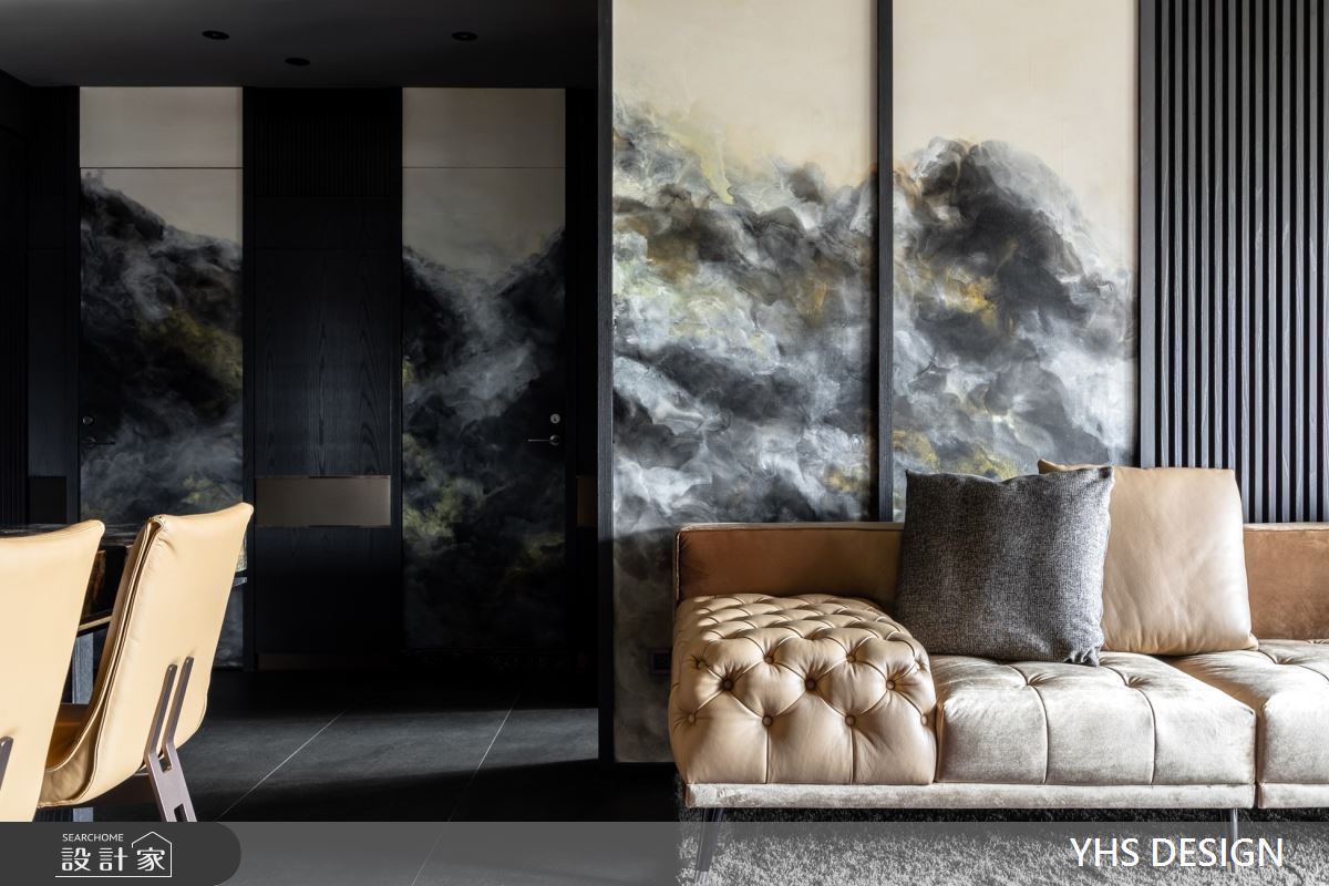 本案為YHS DESIGN設計事業的32坪奢華風新成屋(5年以下)設計作品,格局為單層兩房的居住空間。全室建材的搭配,應用鍍鈦金屬、大理石、皮革、木皮,展現溫馨的居家氛圍。