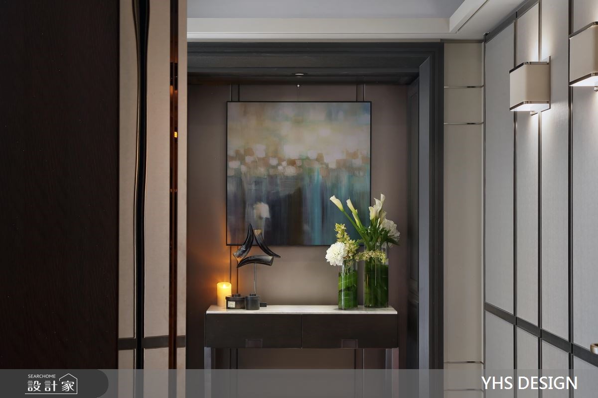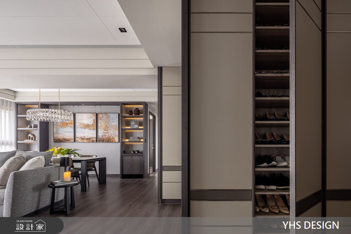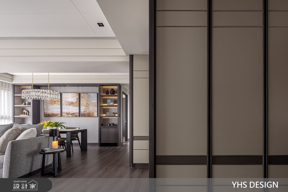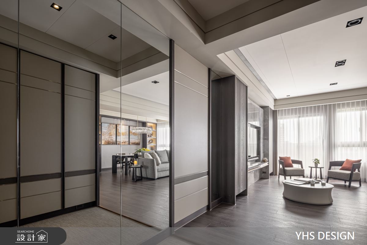 200坪的新古典透天別墅,YHS DESIGN設計事業以水平及菱格線條與複合材質的鋪陳,詮釋簡約古典的新概念,快跟著小編來看看吧! 室內整體視覺上維持古典的優雅風格,但卻運用漸層灰階取代古典常用的米白色調,讓空間多了一分俐落時尚感,傳達出古典與現代交織的獨特氛圍。一樓的公共空間,設計師利用運用框架、門及屏風等設計元素形塑空間場域界定,並讓東西方風格產生融合,且由大面開窗灑落下的日光在門扇的開闔之間創造空間多樣的流暢度與開放性。書房內大量採用穩重的木質調賦予安靜、安然且富內涵的工作閱讀空間,後方展示櫃則運用燈光凸顯展示品,並讓厚實的櫃體顯得輕盈。主臥內延伸公共空間設計調性,床頭以灰色的繃皮展現古典中的現代個性。 小編的最愛 主臥通往衛浴的通道設置更衣空間,考慮到使用者的生活與動線,讓生活的每個動作都十分順暢。