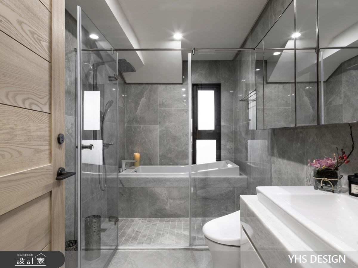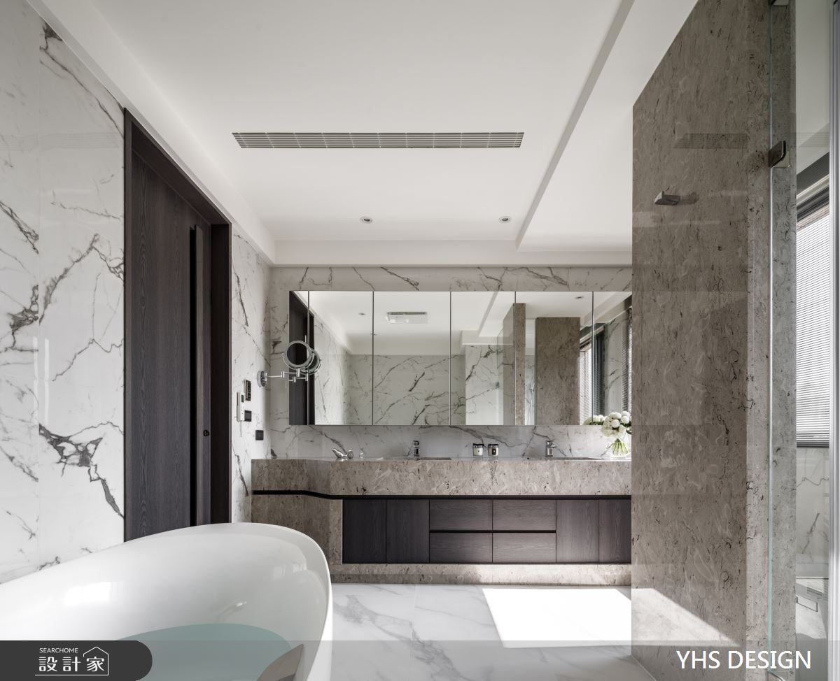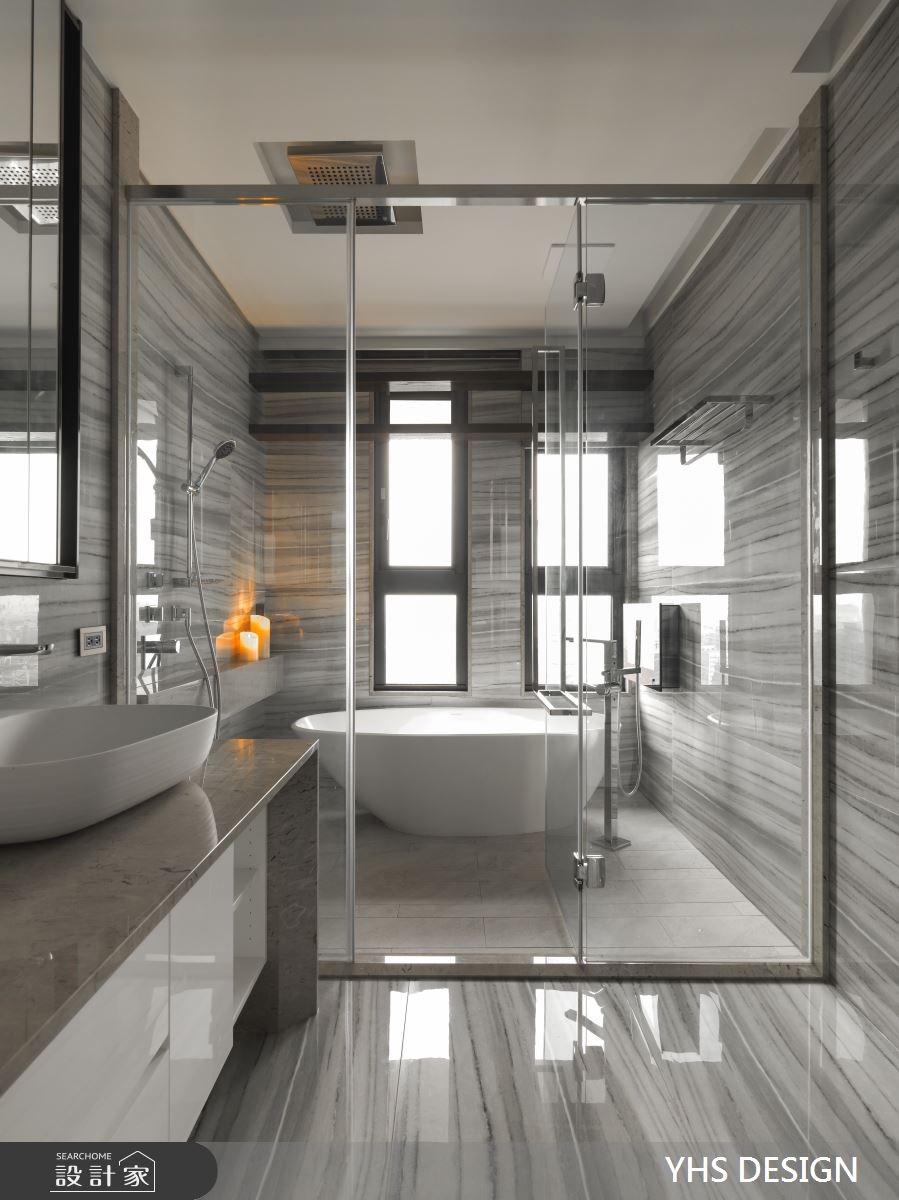 200坪的新古典透天別墅,YHS DESIGN設計事業以水平及菱格線條與複合材質的鋪陳,詮釋簡約古典的新概念,快跟著小編來看看吧! 室內整體視覺上維持古典的優雅風格,但卻運用漸層灰階取代古典常用的米白色調,讓空間多了一分俐落時尚感,傳達出古典與現代交織的獨特氛圍。一樓的公共空間,設計師利用運用框架、門及屏風等設計元素形塑空間場域界定,並讓東西方風格產生融合,且由大面開窗灑落下的日光在門扇的開闔之間創造空間多樣的流暢度與開放性。書房內大量採用穩重的木質調賦予安靜、安然且富內涵的工作閱讀空間,後方展示櫃則運用燈光凸顯展示品,並讓厚實的櫃體顯得輕盈。主臥內延伸公共空間設計調性,床頭以灰色的繃皮展現古典中的現代個性。 小編的最愛 主臥通往衛浴的通道設置更衣空間,考慮到使用者的生活與動線,讓生活的每個動作都十分順暢。