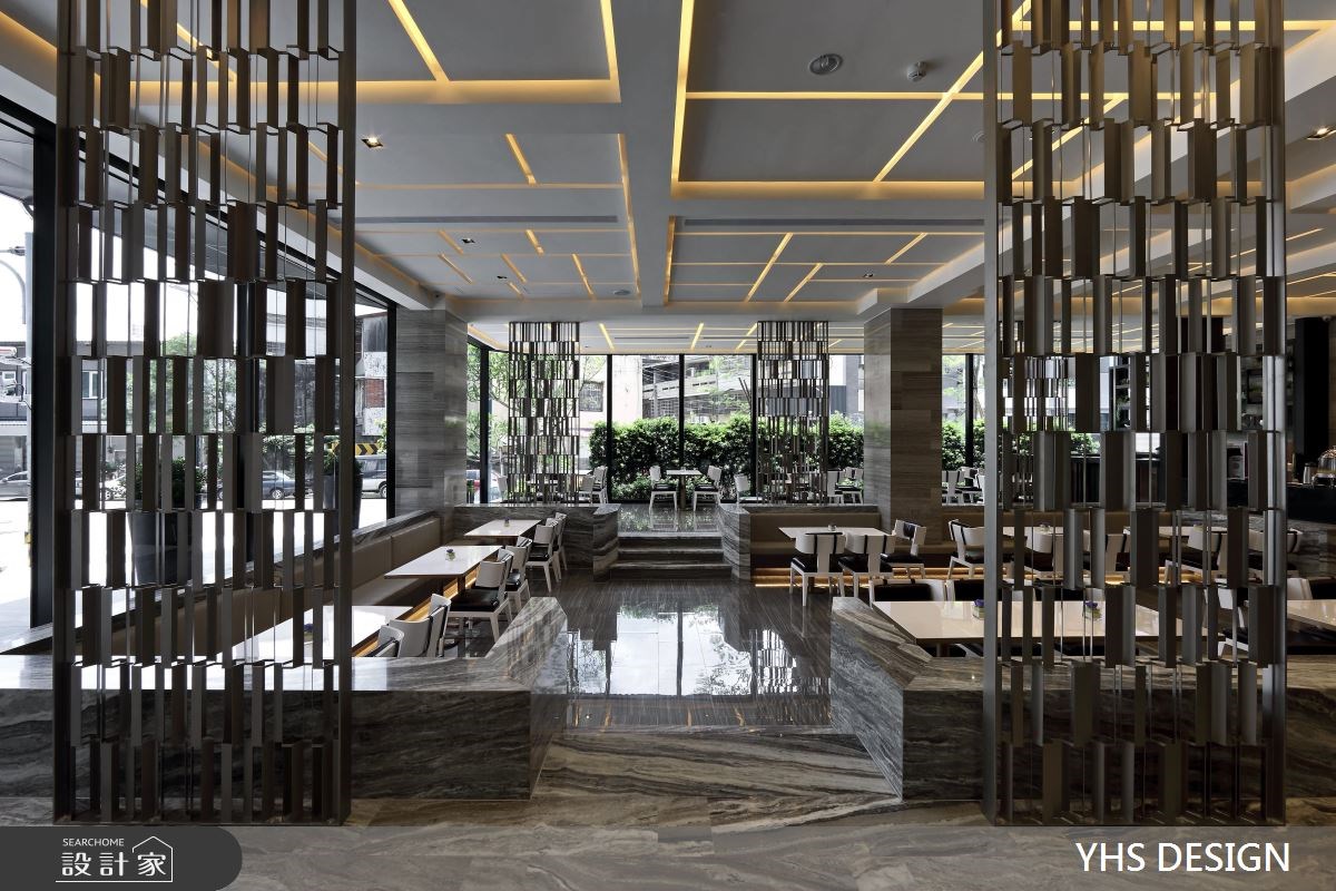由YHS DESIGN設計事業精心規劃的152坪商業空間,因應業主需求,設計師運用輕奢風作為主軸,搭配建材鐵件、灰鏡、大理石、皮革、木皮,打造精緻品味的空間氛圍。