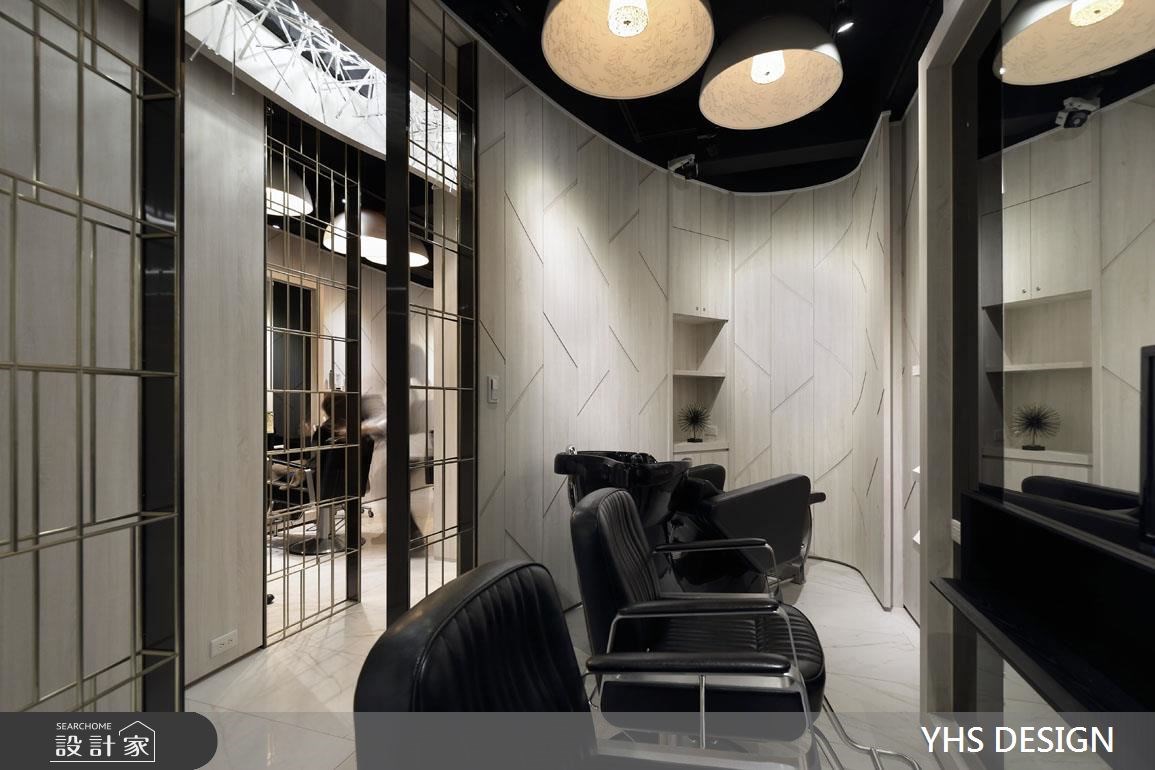 集美髮與美容為一體的商業空間,設計師引用「無形」的靈感概念,透過不突兀,不張揚的設計表現,潛移默化去塑造空間屬性,讓人可在煩擾的都會中、尋得放鬆之感,快跟著小編一起來看看吧! 設計師突破理髮店的單一印象,讓接待區與理髮間加以區別,使用透明的壓克力棒妝點天花板,平時低調地隱於頂部,當燈光點亮、光影折射天花板時,則形成精彩如銀河般的風景,給予人輕巧的空氣感印象;同時,用「圓弧」和「蛋形」劃分理髮空間,運用包廂式的規劃,讓每個小空間內都囊括一個沖洗台和兩個理髮台機能,而起伏的弧形牆面,則將機能巧妙隱於設計之中,藉由金屬隔柵、木紋牆面虛實相生,把瑣碎和駁雜幕蓋於線條之內,使空間顯得完整而流暢! 小編的最愛 設計師將空間做出延伸,透過綿延動線,順勢引導客人步入後方,產生一探深處究竟的樂趣;而從入口到底端,則打造一水景作為視覺盡頭,藉著綠意的渲染,營造自然風情與柔美生命力!