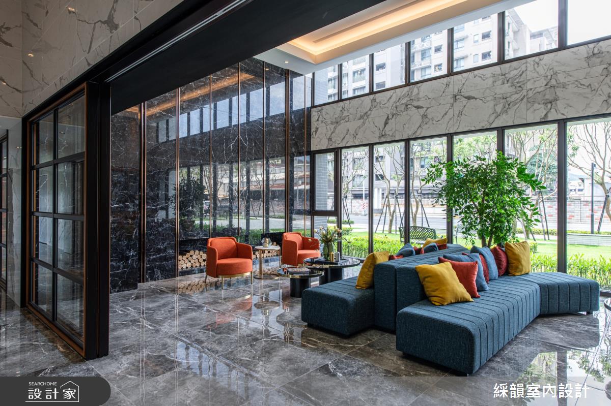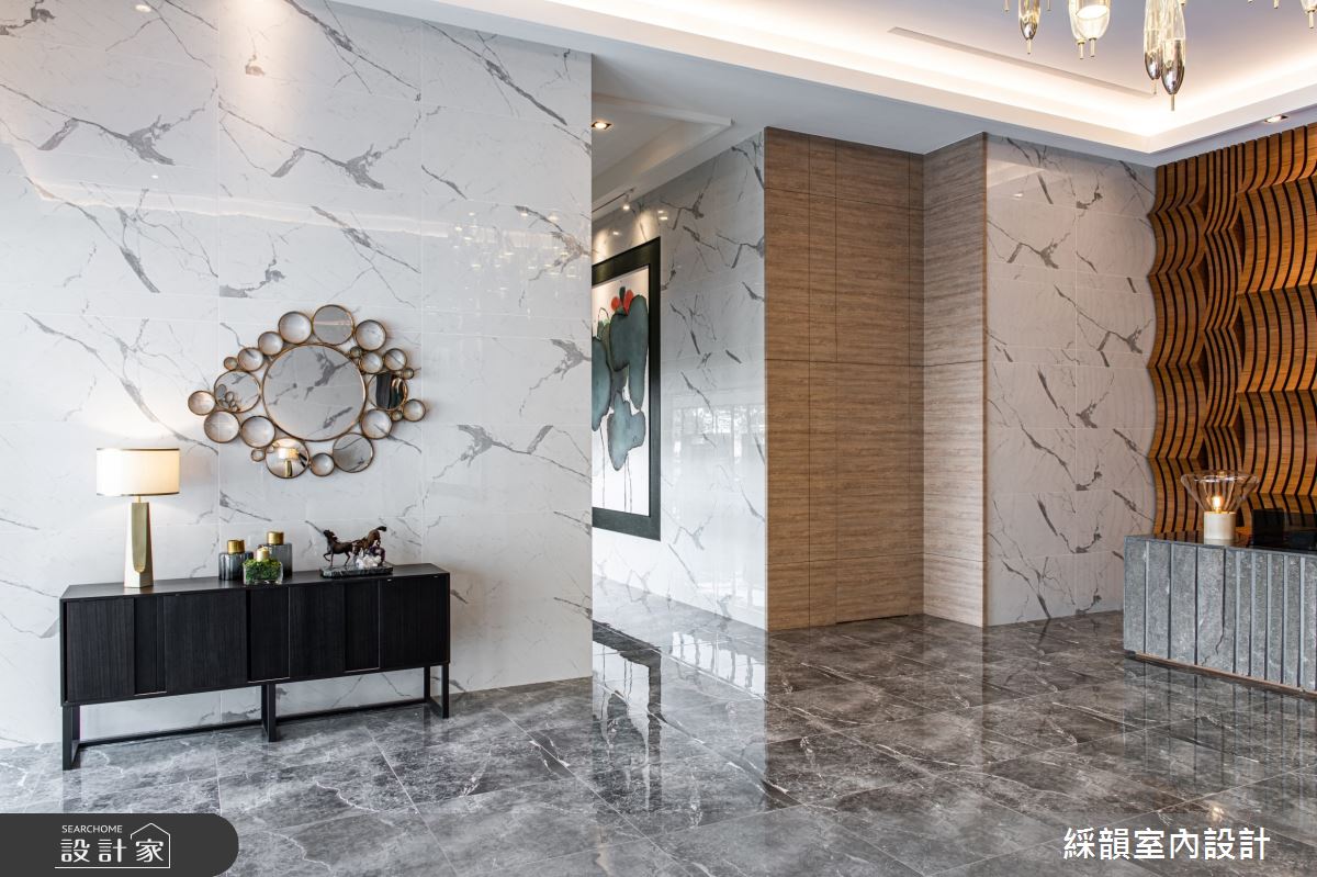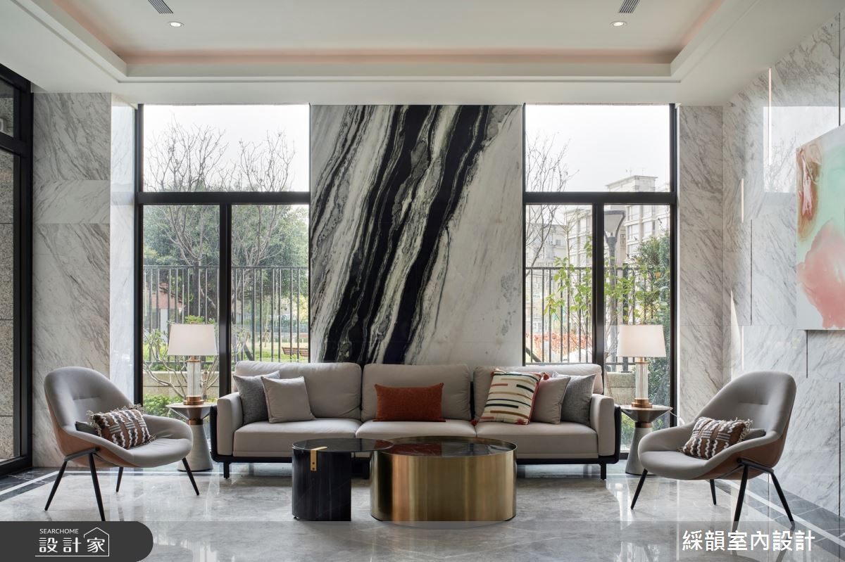 由綵韻室內設計精心規劃的113坪公共空間,因應業主需求,設計師運用輕奢風作為主軸,搭配建材花磚、大圖輸出、超耐磨木地板、鐵件、灰鏡、鍍鈦金屬、皮革、石材、線板、噴漆、清水模塗料,打造精緻品味的空間氛圍。