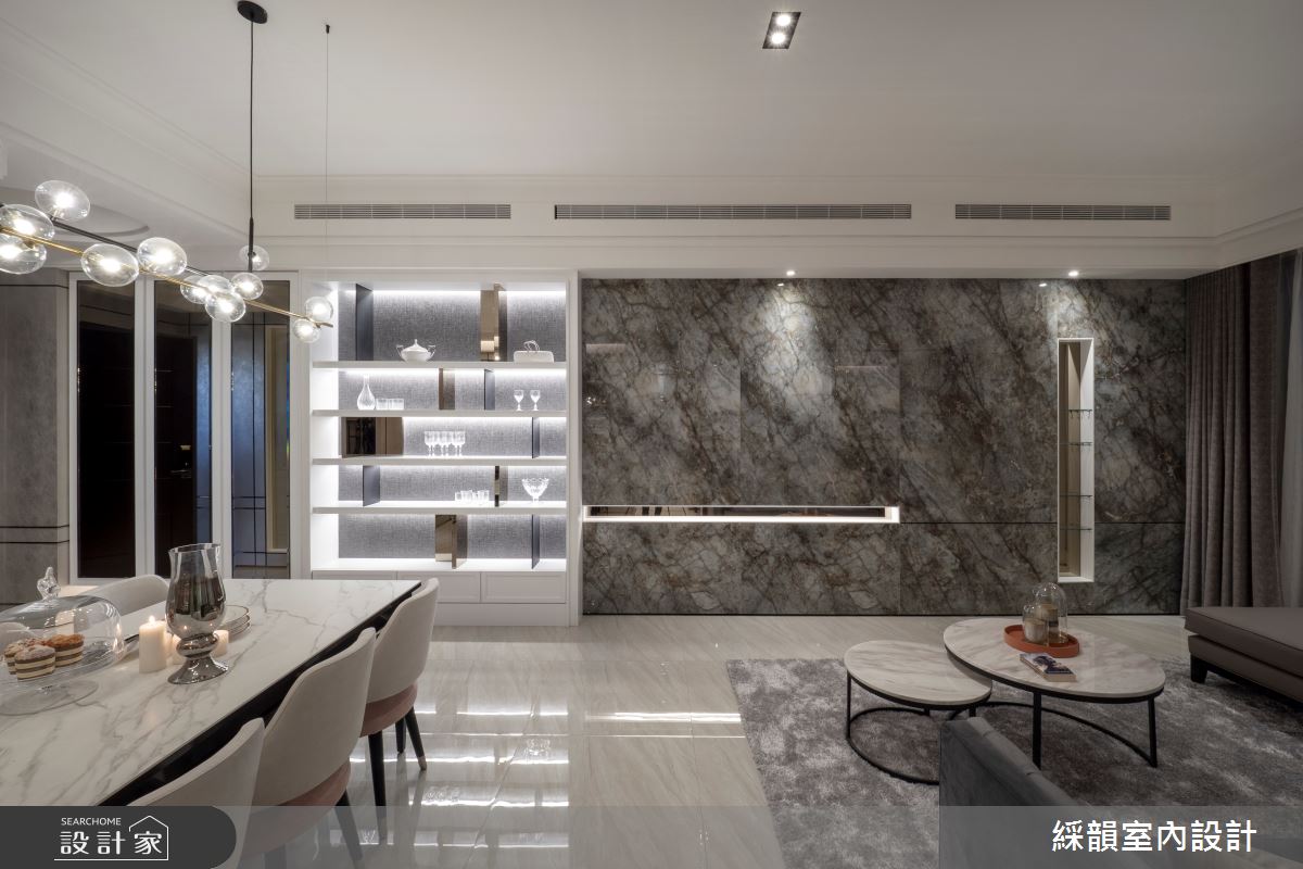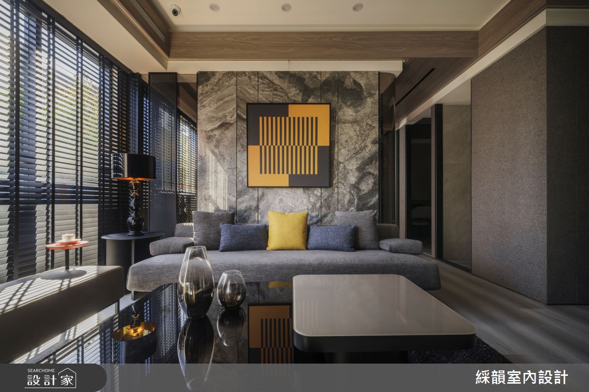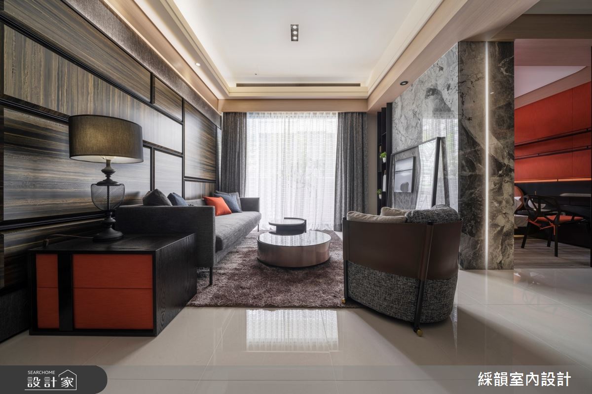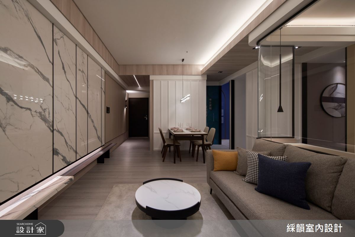 來自綵韻室內設計的50坪奢華風住宅案,是一間單層預售屋的三房格局,設計師藉由建材以木地板、鐵件、石材、木皮、玻璃的搭配應用,實現一家人的理想生活。