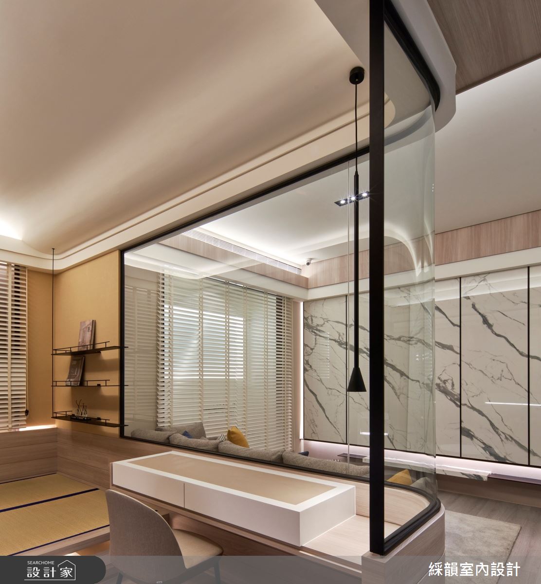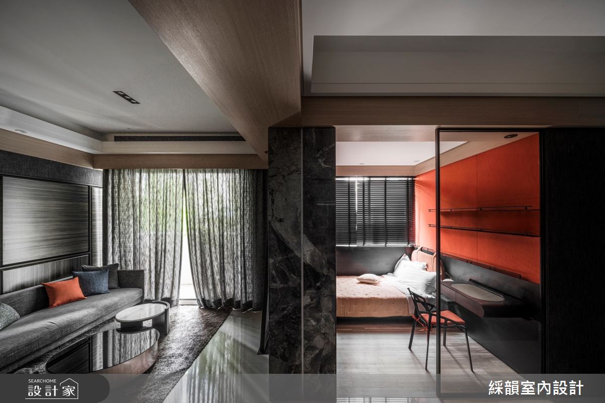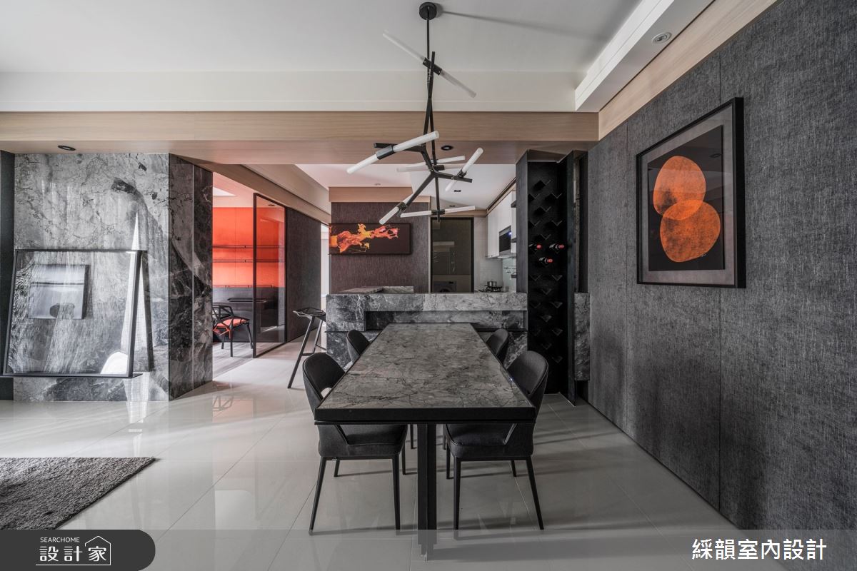 來自綵韻室內設計的50坪奢華風住宅案,是一間單層預售屋的三房格局,設計師藉由建材以木地板、鐵件、石材、木皮、玻璃的搭配應用,實現一家人的理想生活。