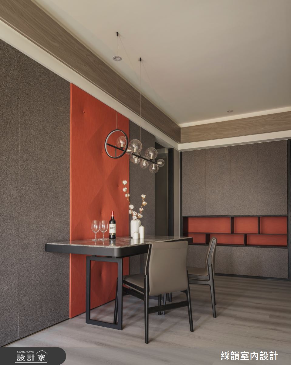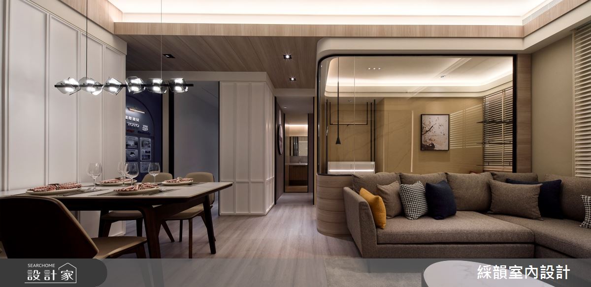 由綵韻室內設計精心規劃的35坪三房住宅空間。因應屋主需求,設計師運用現代風作為主軸,搭配壁紙、木地板、鐵件、石材、壁布,打造全家人的夢想家居。