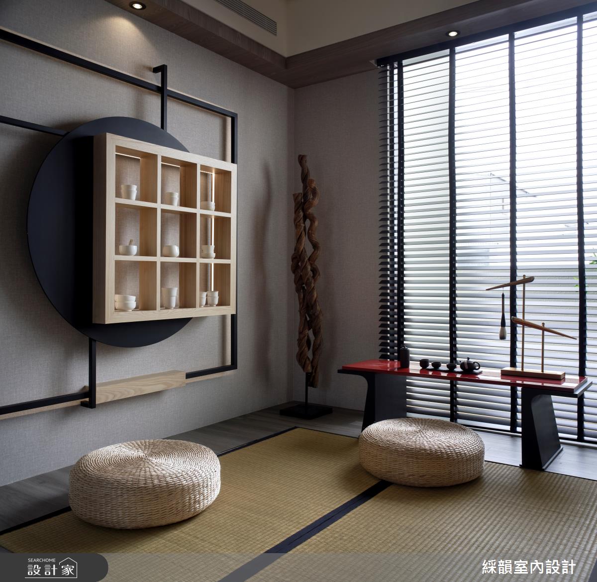 綵韻室內設計以壁紙、鐵件、石材、木皮、壁布的搭配應用,呈現現代風居家氛圍,將此間38坪、三房、單層、預售屋打造成舒適愜意的家庭空間,完成全家人的夢想之居。