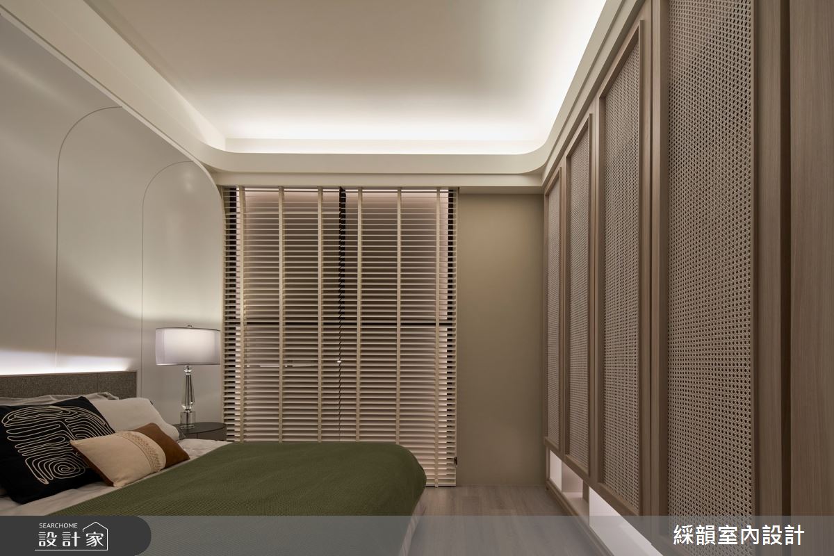 本案為綵韻室內設計的37.18坪混搭風預售屋設計作品,格局為單層三房的居住空間。全室建材的搭配,應用乳膠漆、壁紙、超耐磨木地板、石英磚/拋光石英磚、榻榻米、鐵件、茶玻、木作貼皮、大理石、木百葉、皮革、繃布、噴漆,展現溫馨的居家氛圍。
