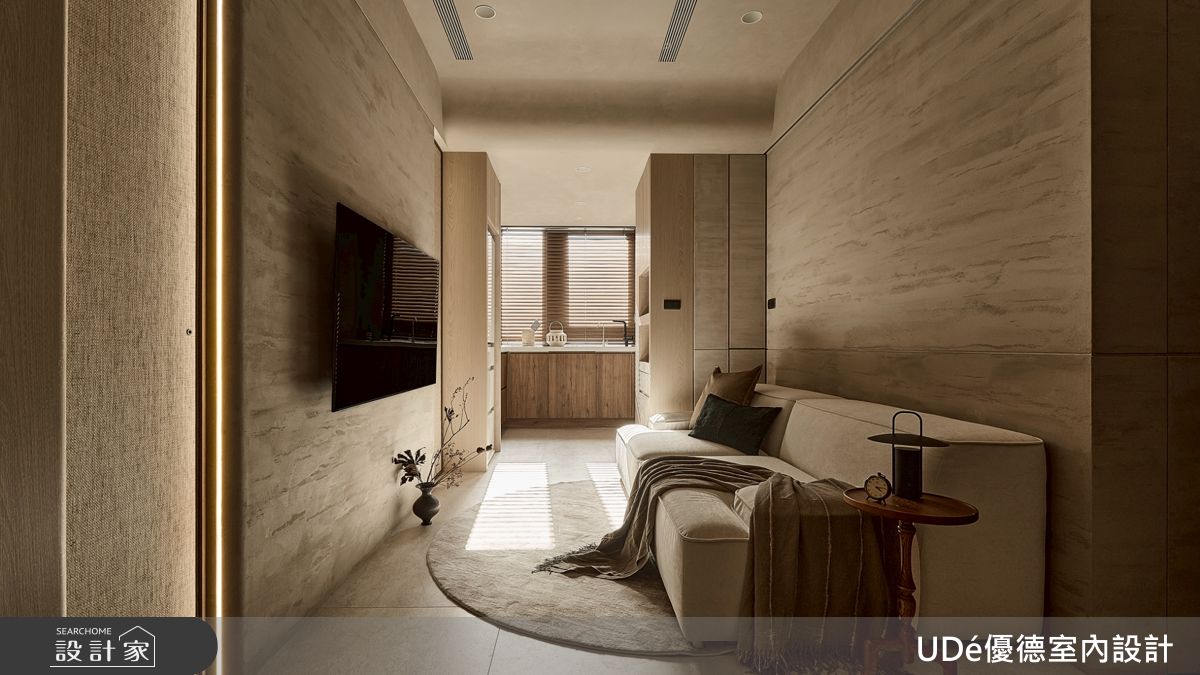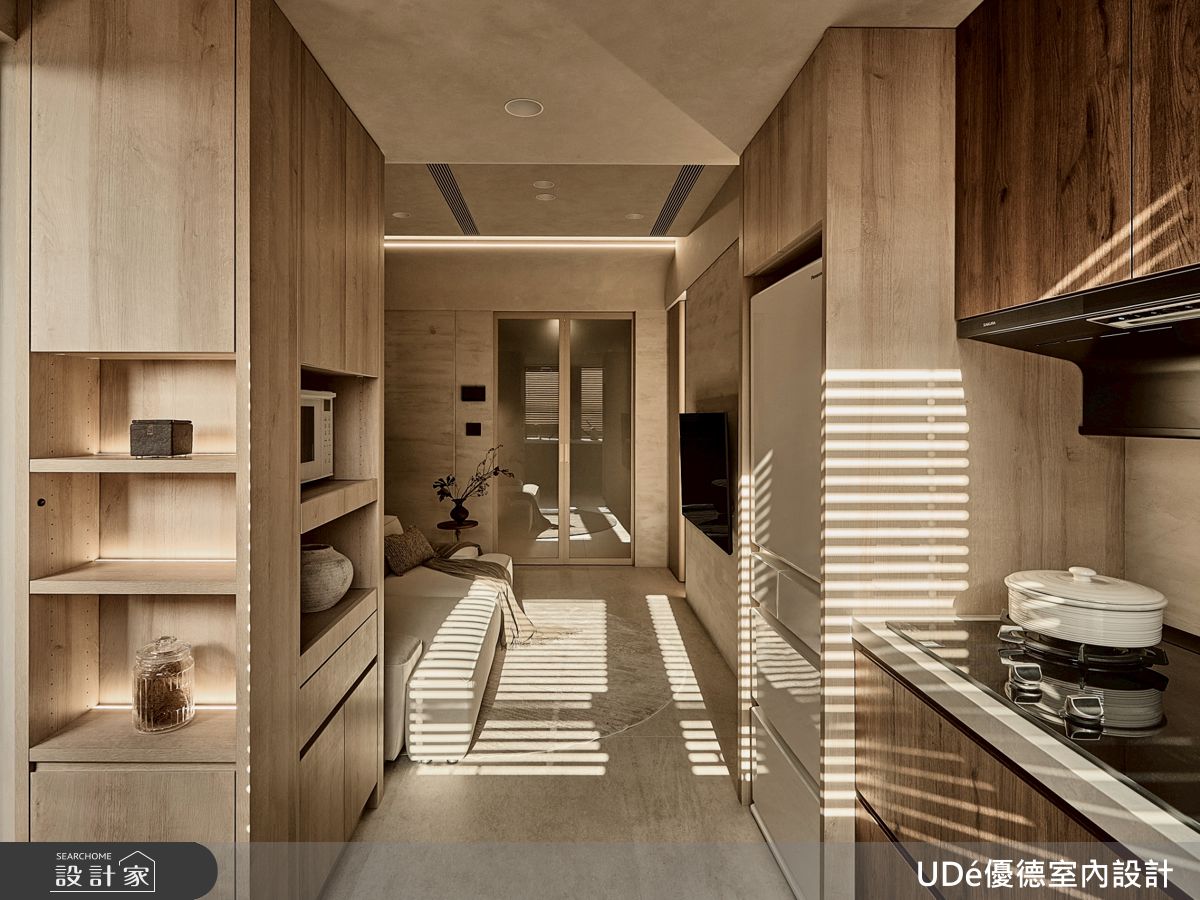 由優德室內設計精心規劃的21坪兩房住宅空間,家庭成員一共有2位大人。因應屋主需求,設計師運用侘寂風作為主軸,搭配乳膠漆、木地板、木紋磚、不鏽鋼、鐵件、灰鏡、茶玻、鋼刷木皮、系統板材、磁磚、賽麗石、石材、礦物漆、薄板、壁紙,打造全家人的夢想家居。