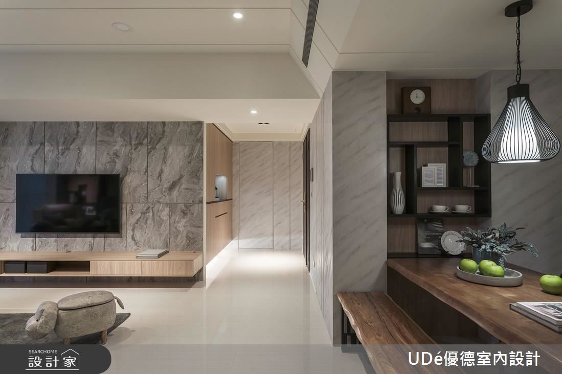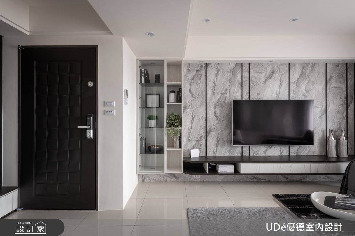 30 坪居家空間,設計師挹注俐落時尚的線條語彙,搭以現代風作為空間底調,並結合實用收納機能,與空間感放大的設計手法,打造出精緻而實用的居住好宅,快跟著小編一起來看看吧! 客廳,採以仿大理石材板建構電視牆,搭以黑色線條勾勒出俐落輪廓,呈現出時尚高雅的主視覺表情,而無論是立面或家具軟件,都連貫黑、白、灰的灰階時尚主題,運用經典不敗的色調比例,形塑自信優雅的居家視野;餐廳除了延續客廳、玄關的簡約風格外,也另外採用灰鏡、玻璃等素材增添透亮感,提升用餐空間的視覺質感;臥房部分,則多選用溫潤且暖白之木色,搭配自然色調的水泥漆,創造床頭的亮眼風采,營造浪漫悠閒的休寢氛圍,並規劃專屬更衣間,藉由完整收納滿足屋主需求、同步展示使用者品味! 小編的最愛 設計師透過完美的色彩、材質及空間比例,讓居家整體顯出精緻內斂的風情,演繹出屋主卓越不凡的眼光!