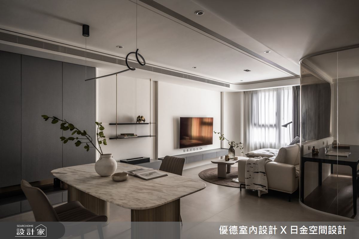 來自優德室內設計的21坪簡約風住宅案,屋主一家人共有2位大人、2位小孩,是一間單層新成屋(5年以下)的兩房格局,設計師藉由建材以烤玻、特殊塗料的搭配應用,實現一家人的理想生活。