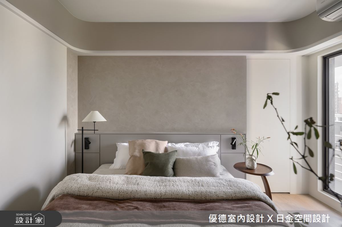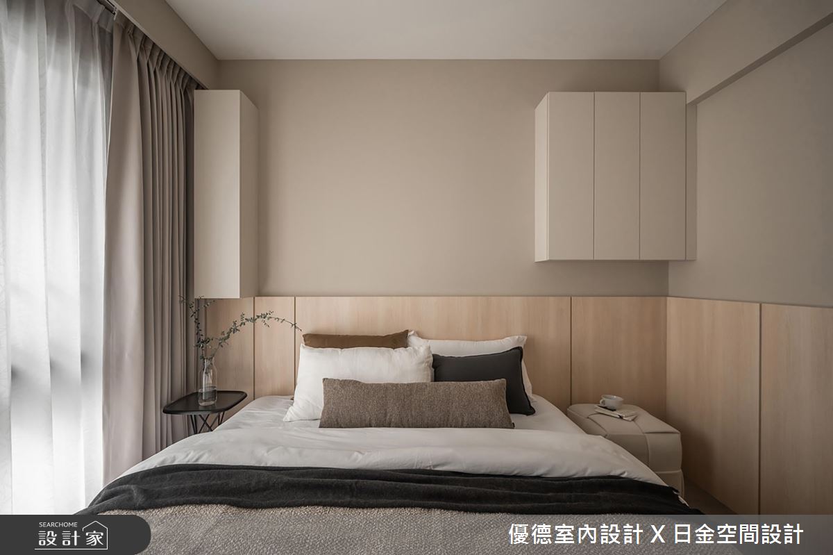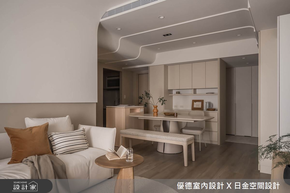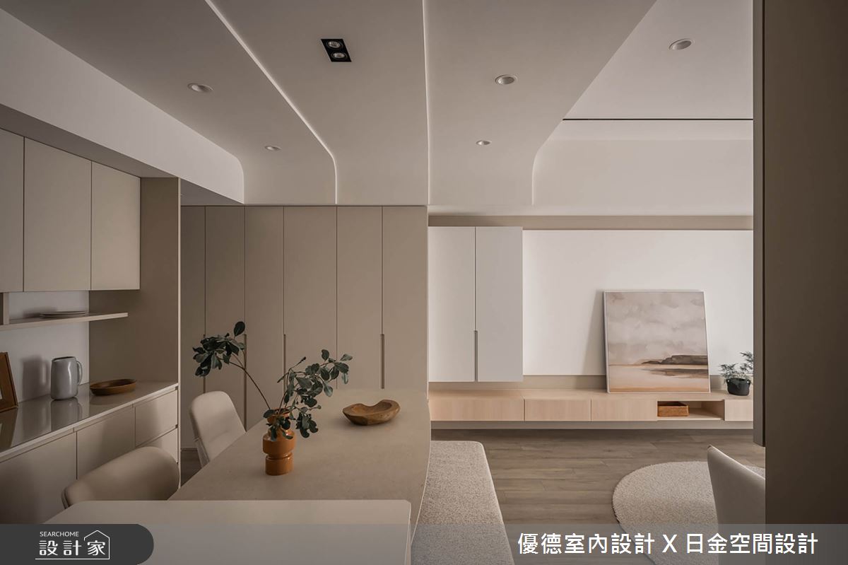 優德室內設計 X 日金空間設計以乳膠漆、木地板、烤玻、系統板材的搭配應用,呈現北歐風居家氛圍,將此間21坪、三房、單層、新成屋(5年以下)打造成舒適愜意的家庭空間,完成4位大人全家人的夢想之居。