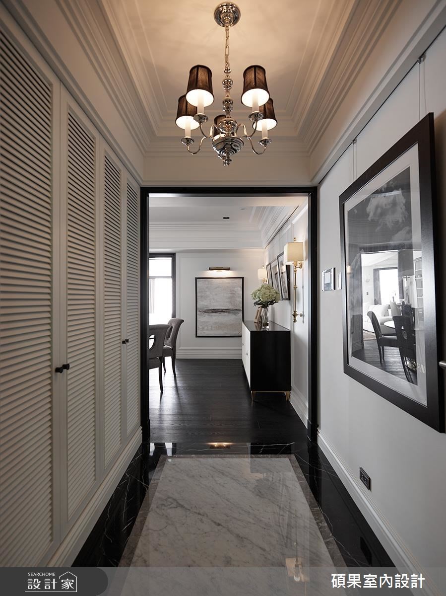 55 坪美式風居家,屋主為經營進口家具的一對夫妻,夢想著能入住紐約上城區般的優雅居宅,因此在設計主軸上,設計師給予簡約的黑色與白色定調,搭配進口家具與擺飾,打造出美輪美奐的居住視野,快跟著小編一起來看看吧! 設計師以細膩手法塑造居家每個角落,透過深淺對比的應用,讓色彩回歸單純,帶入高雅的黑色調,增添純白空間的對比層次,同時援引景致及陽光,讓光的流轉蔓延於居室每一處;透過ㄇ字型框架劃界場域,將客廳、書房並列在同一區,另一端則整合餐廳於廚房機能,使空間形成串聯感;開放的餐廚空間,規劃餐桌、輕食吧檯等機能場域,承襲黑白調的對比主題,藉由典雅的建材與色調運用,高雅而不失情感溫度,成為凝聚家人互動的核心場域,讓一家人可在此享受生活樂趣;臥房,充滿著活潑的氛圍,以軟件、壁紙襯佐線板及百葉窗裝飾,為個人風格做出最完美的詮釋! 小編的最愛 設計師實現了想像中的曼哈頓生活,讓女主人即使身在台灣,也可享受到紐約上東城的低調奢華,滿足其居住夢想!
