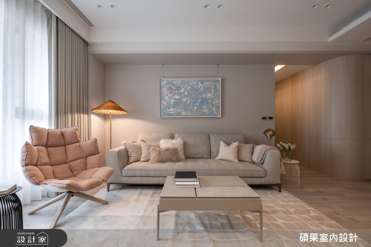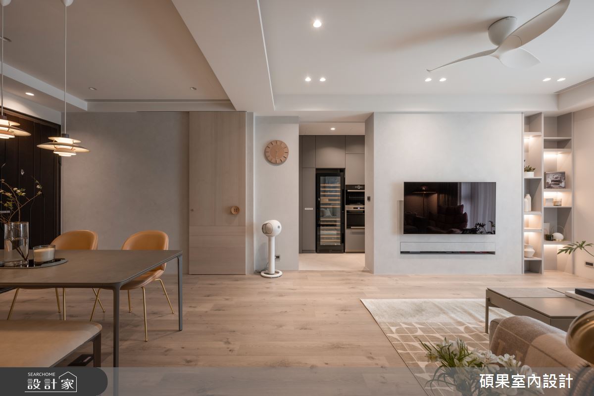 來自碩果室內設計的30坪北歐風住宅案,屋主一家人共有2位大人、2位小孩,是一間單層毛胚屋的三房格局,設計師藉由建材以礦物塗料、天然木皮、礦物漆、進口磁磚、進口板材、超耐磨木地板的搭配應用,實現一家人的理想生活。