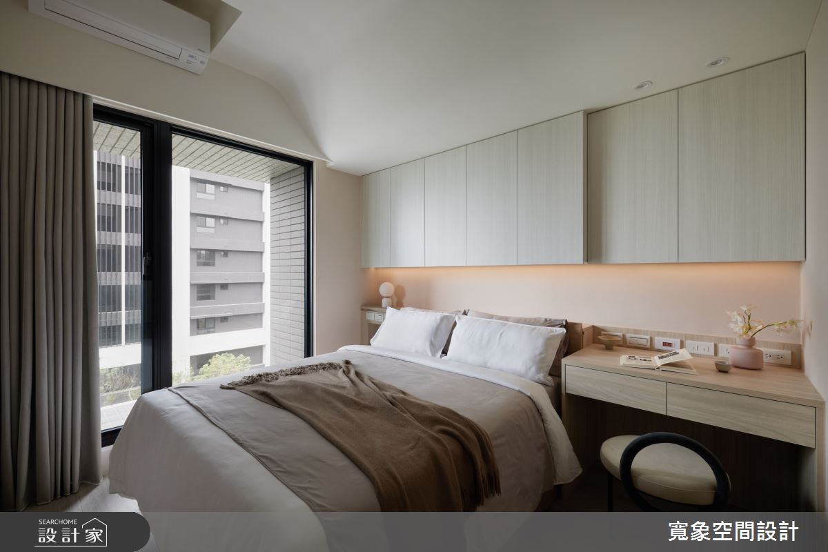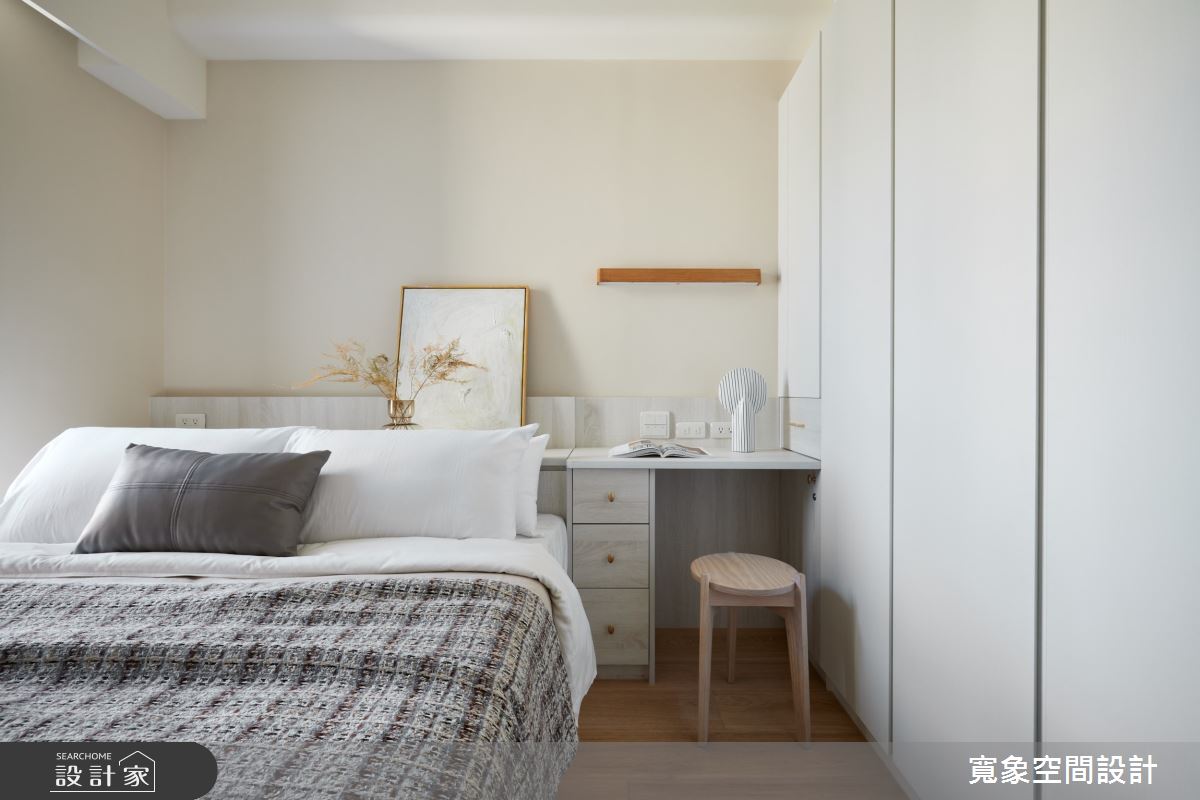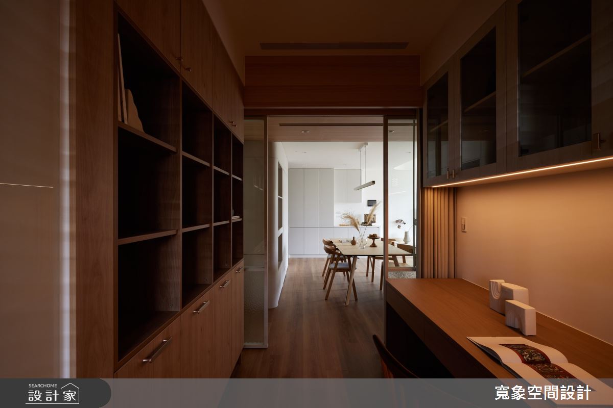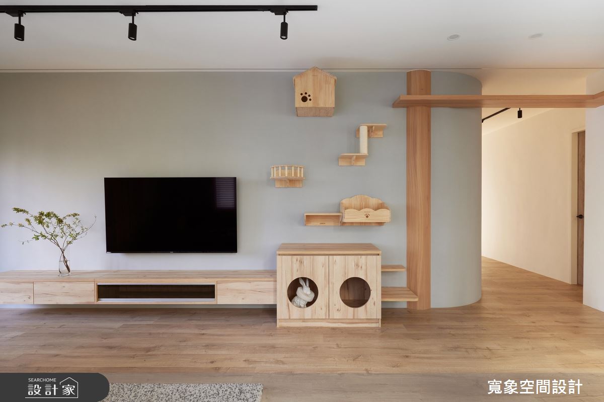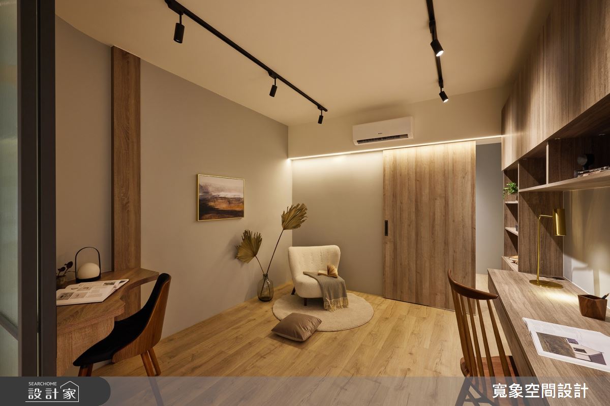 寬象空間設計以油漆、乳膠漆、超耐磨木地板、木地板、木紋磚、鐵件、烤玻、木作貼皮、烤漆、系統板材、磁磚、木百葉、繃布的搭配應用,呈現日式北歐風居家氛圍,將此間28坪、三房、單層、新成屋(5年以下)打造成舒適愜意的家庭空間,完成2位大人、1位小孩全家人的夢想之居。
