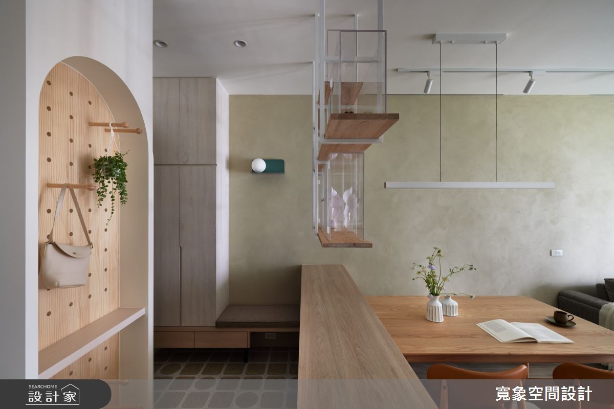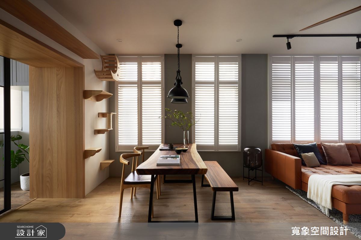 來自寬象空間設計的41坪混搭風住宅案,屋主一家人共有2位大人、3位小孩,是一間單層老屋(31~40年)的三房格局,設計師藉由建材以乳膠漆、花磚、超耐磨木地板、鐵件、茶玻、壓克力、鋼刷木皮、系統板材、大理石、磁磚、木百葉、特殊塗料的搭配應用,實現一家人的理想生活。