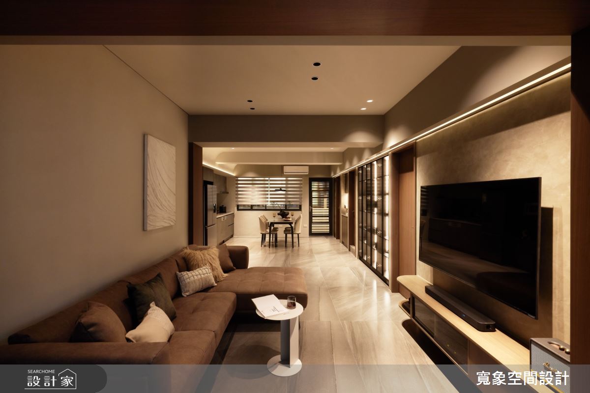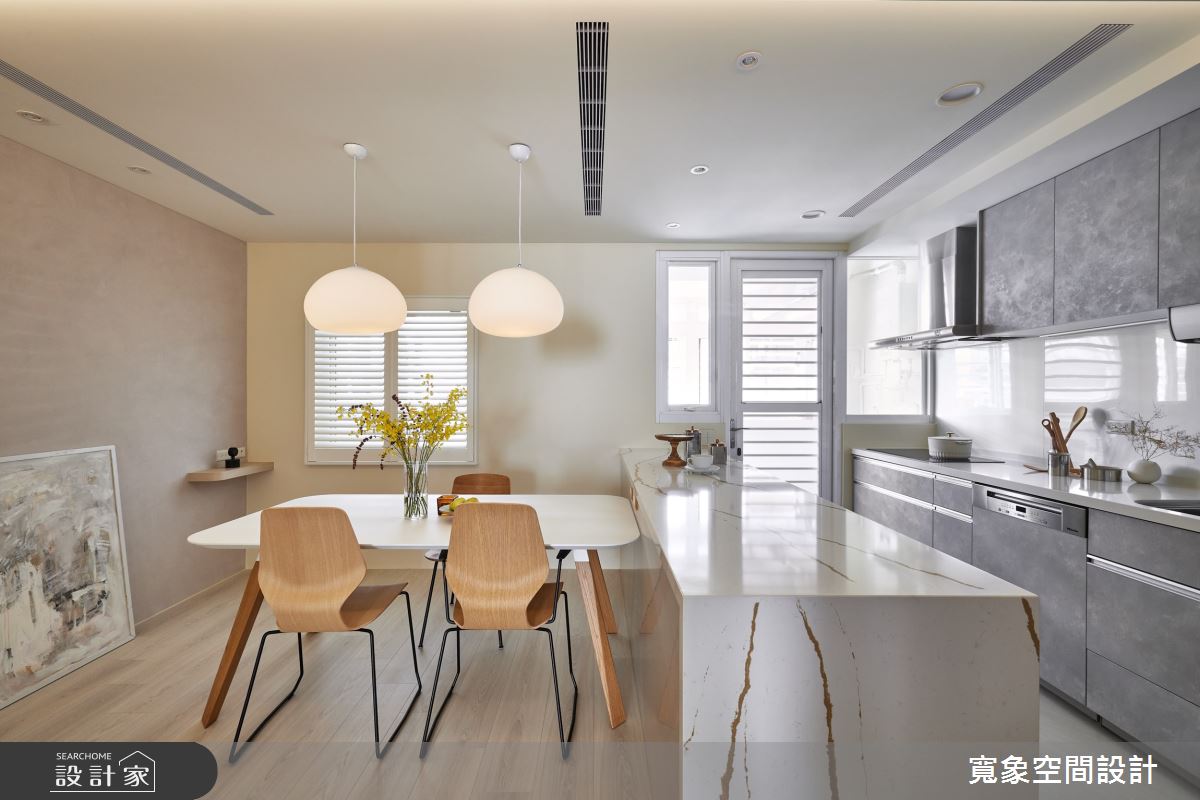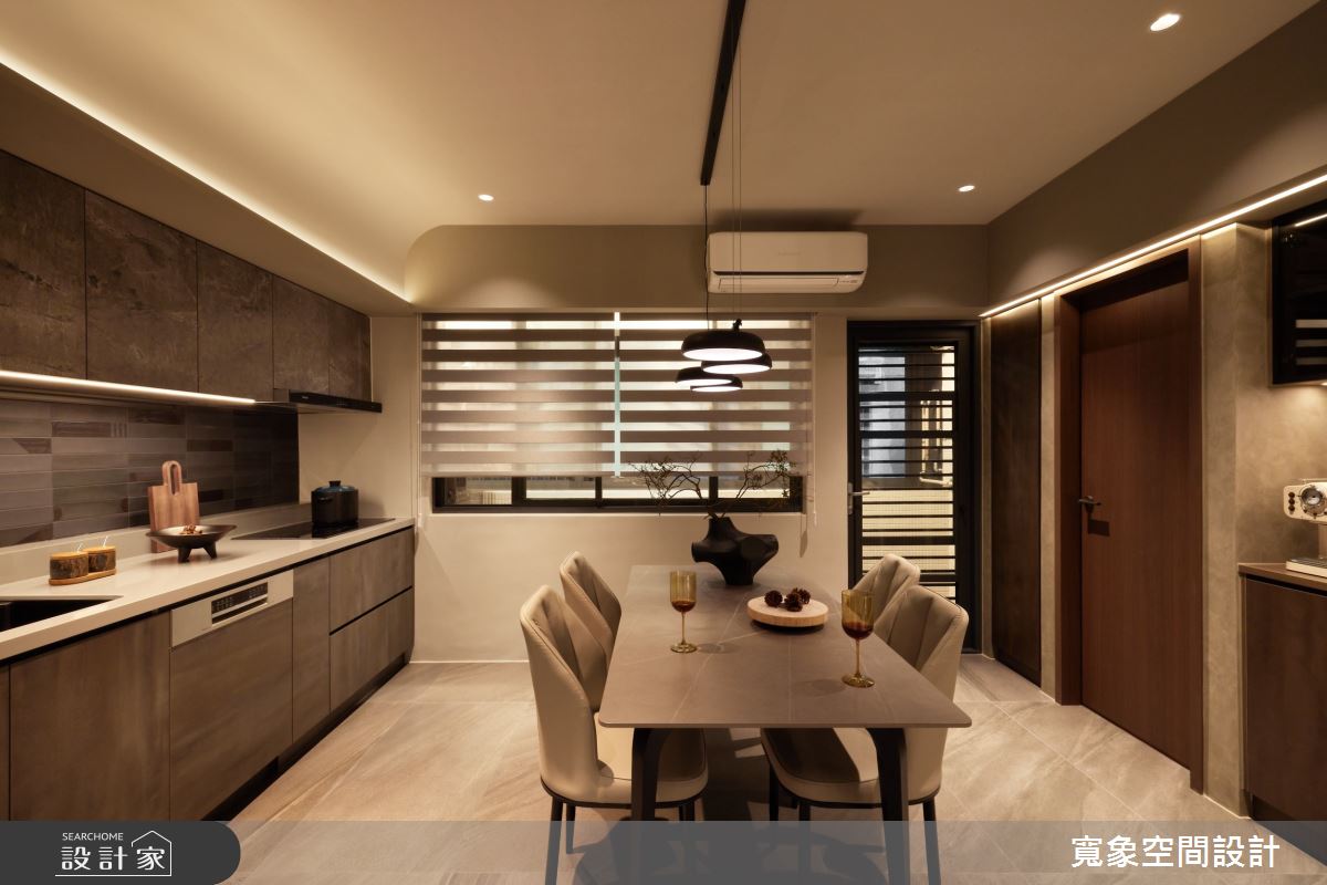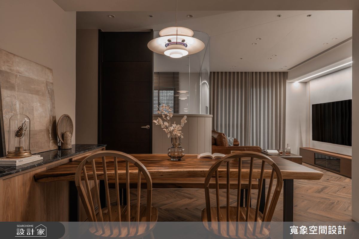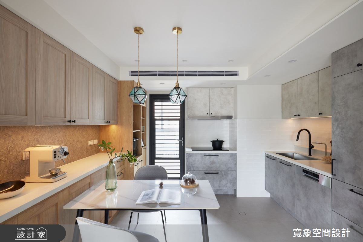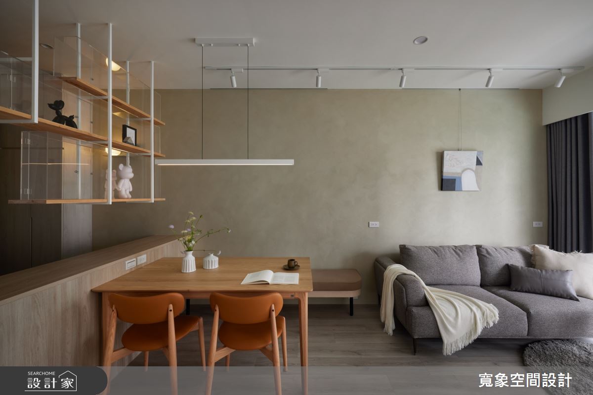 由寬象空間設計精心規劃的26.5坪兩房住宅空間,家庭成員一共有2位大人。因應屋主需求,設計師運用現代風作為主軸,搭配乳膠漆、鐵道磚、木紋磚、石英磚/拋光石英磚、茶玻、系統板材、人造石、特殊塗料,打造全家人的夢想家居。