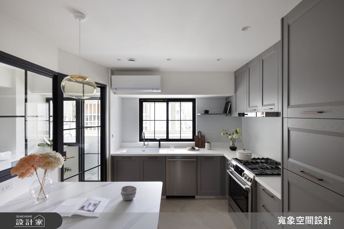 由寬象空間設計精心規劃的39坪三房住宅空間,家庭成員一共有2位大人。因應屋主需求,設計師運用美式風作為主軸,搭配油漆、乳膠漆、鐵道磚、六角磚/蜂巢磚、花磚、超耐磨木地板、不鏽鋼、鐵件、系統板材、大理石、磁磚、木百葉、石材,打造全家人的夢想家居。