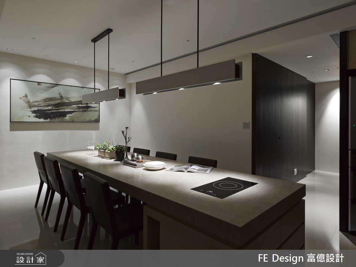 來自富億空間設計的40坪現代簡約風住宅案,屋主一家人共有2位大人,是一間單層新成屋(5年以下)的三房格局,設計師藉由建材以油漆、乳膠漆、木地板、石英磚/拋光石英磚、鐵件、鍍鈦金屬、木作貼皮、烤漆、大理石、磁磚、人造石、石材、繃布、噴漆的搭配應用,實現一家人的理想生活。