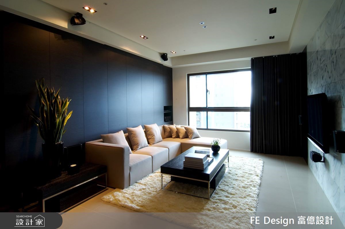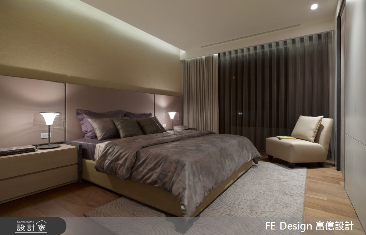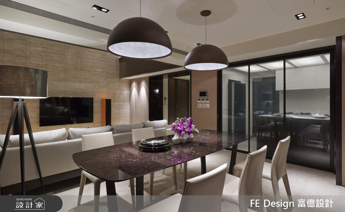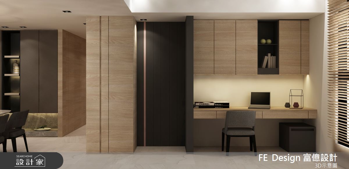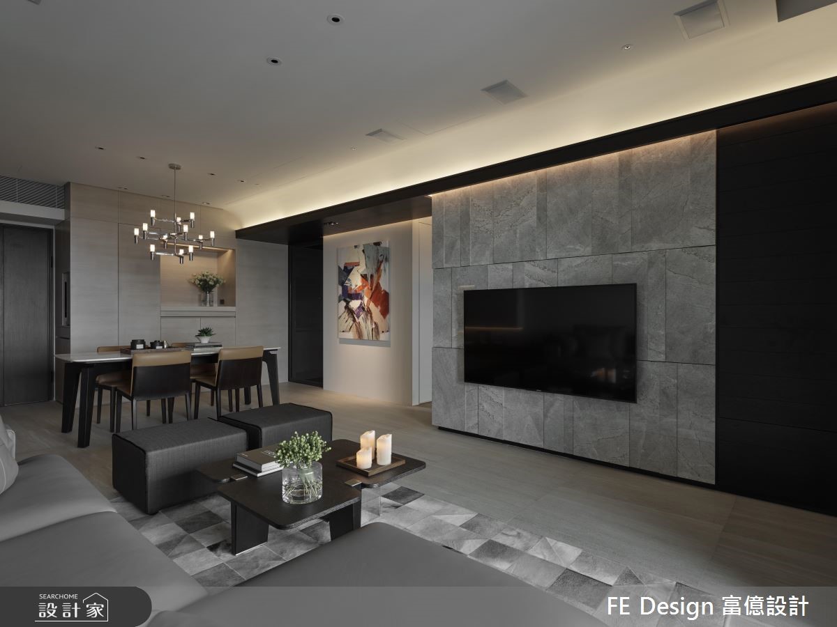 來自富億空間設計的108坪現代風住宅案,屋主一家人共有2位大人、2位小孩,是一間單層毛胚屋的四房格局,設計師藉由建材以壁紙、木地板、石英磚/拋光石英磚、不鏽鋼、鐵件、灰鏡、茶玻、烤玻、鍍鈦金屬、木作貼皮、烤漆、大理石、磁磚、樂土、人造石、賽麗石、皮革、石材、繃布、噴漆、噴砂玻璃、特殊漆的搭配應用,實現一家人的理想生活。