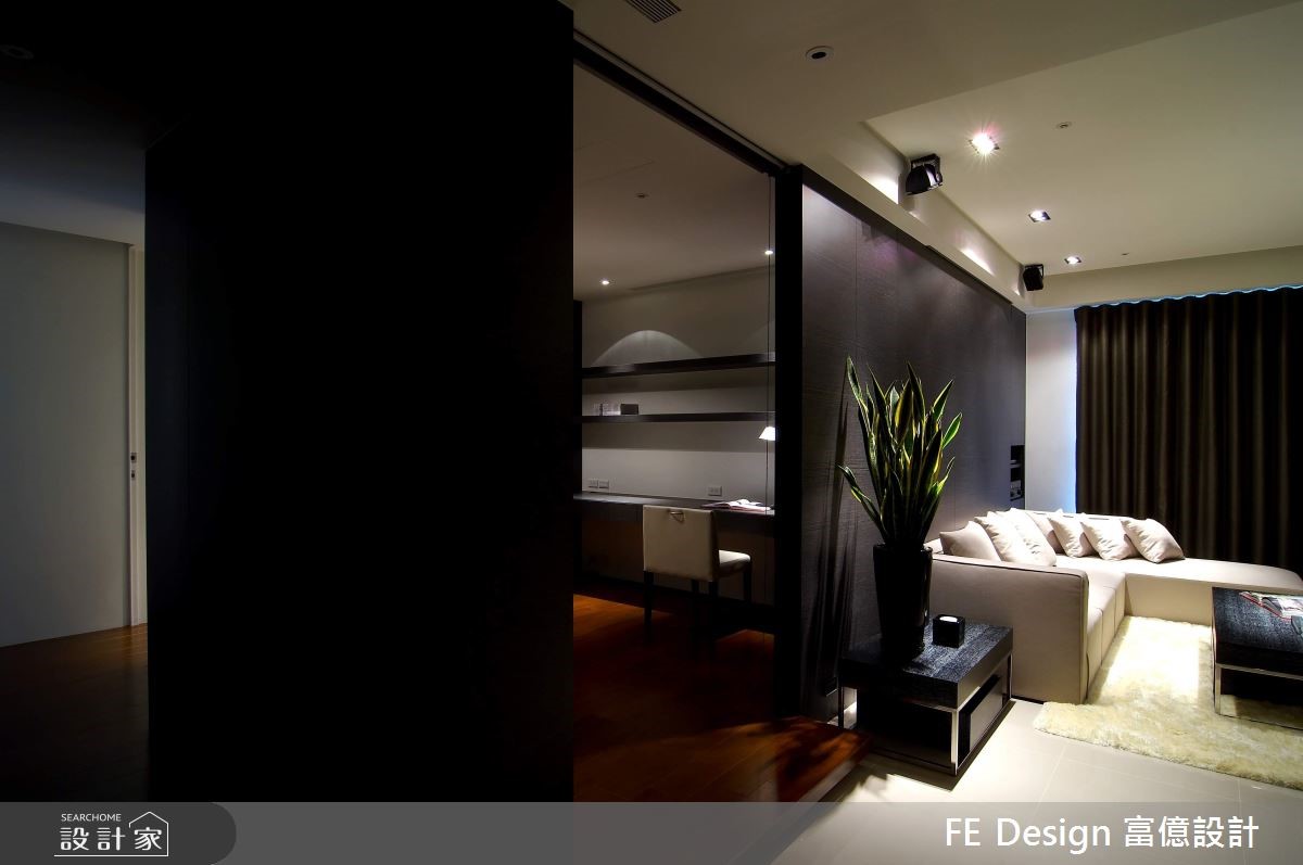 本案為39坪現代風居家,設計師關照全家人需求,透過細節的堆疊,以簡約的現代人文風格作為空間底蘊;公領域以黑白灰為基調,規劃大理石電視牆,運用進出面手法排列立體造型,沙發牆則刷塗馬來漆形成呼應;餐廳內打造純白造型牆,掛上繽紛抽象畫,形塑俐落簡潔的藝廊氣質,廚房入口採以黑玻門片引導光線,帶來適度的遮蔽效果;書房內,以架高木地板做為彈性界定,規劃大容量櫃體滿足屋主的收納需求,且沿窗設置臥榻,構築休憩放鬆的角落;主臥床頭牆鋪貼壁布,帶來溫暖質感,搭配兩盞壁燈妝點,展現豐富的場域層次。