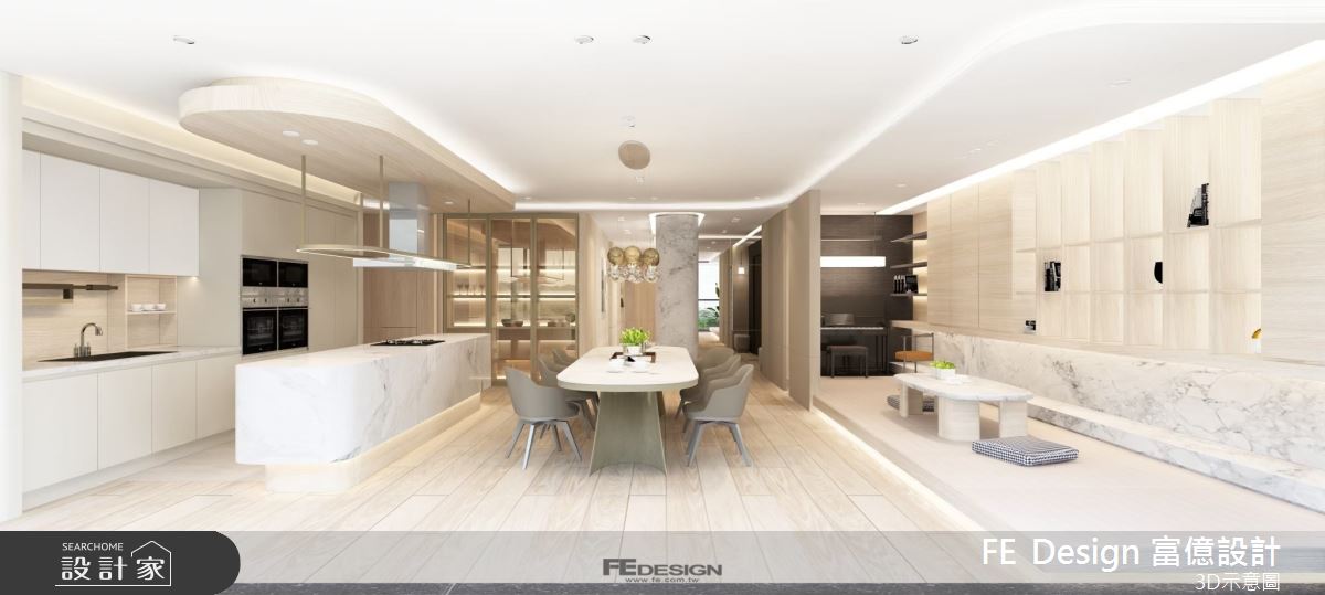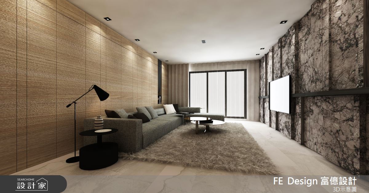 由富億空間設計精心規劃的48坪四房住宅空間。因應屋主需求,設計師運用簡約風作為主軸,搭配鋼刷木皮、大理石、拋光磚、木皮特殊染色,打造全家人的夢想家居。