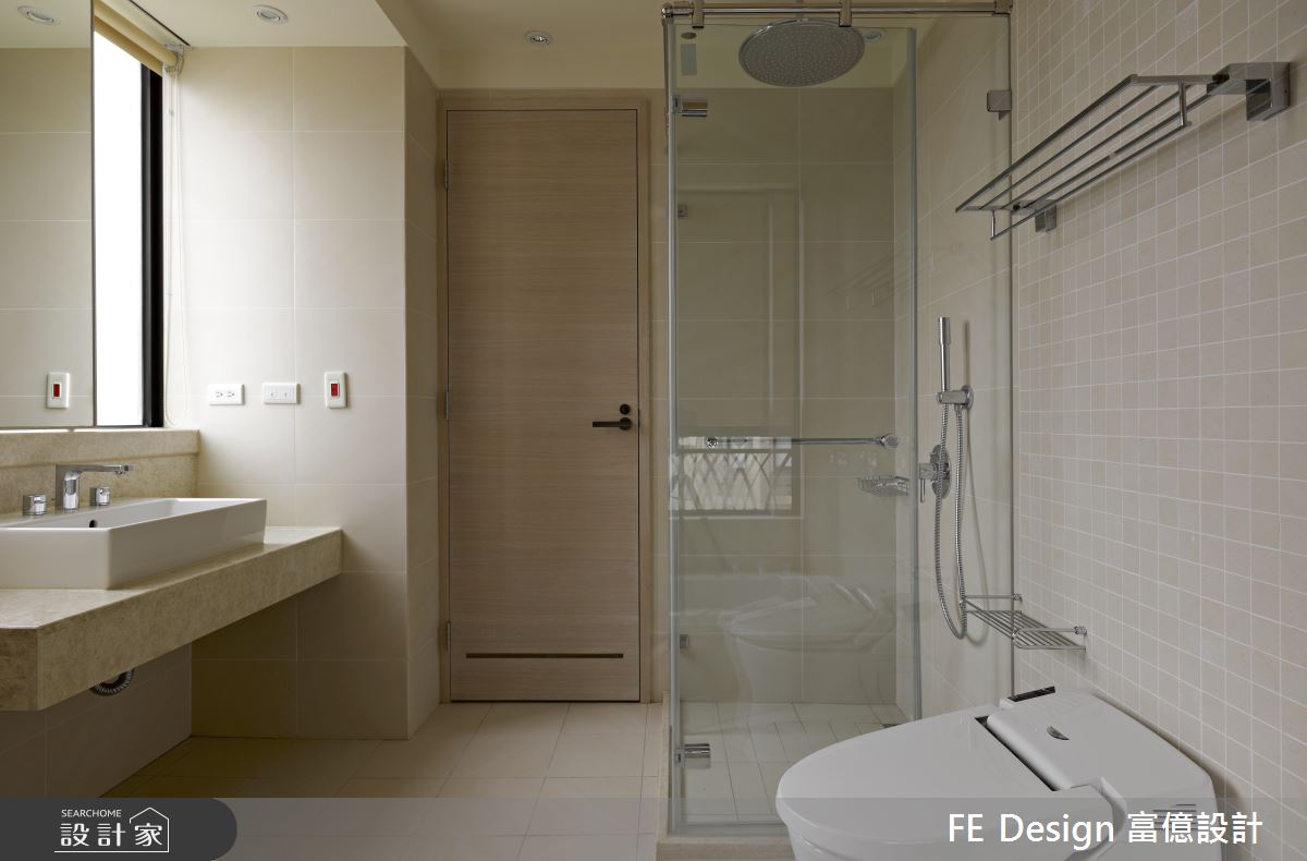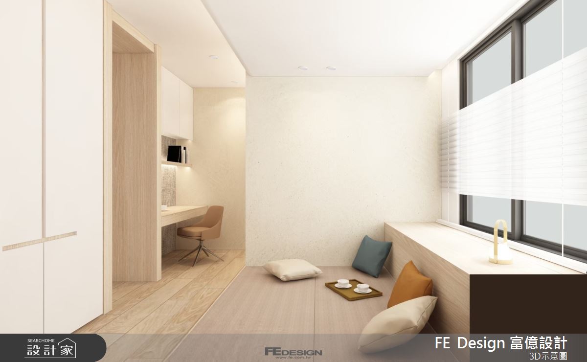 富億空間設計以木地板、石英磚、榻榻米、灰鏡、鍍鈦金屬、木作貼皮、大理石、賽麗石、皮革、石材、繃布、線板、噴漆、噴砂玻璃的搭配應用,呈現現代侘寂風居家氛圍,將此間125坪、四房、單層、新成屋(5年以下)打造成舒適愜意的家庭空間,完成2位大人、1位小孩全家人的夢想之居。