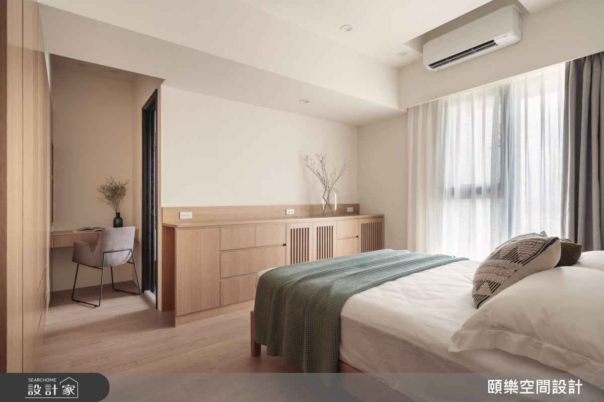 來自頤樂空間設計的35坪日式無印風住宅案,屋主一家人共有1位大人,是一間單層老屋(50年以上)的三房格局,設計師藉由建材以乳膠漆、超耐磨木地板、木紋磚、PVC地板、茶玻、木作貼皮、烤漆、鋼刷木皮、系統板材、磁磚、賽麗石、軌道燈、繃布、噴砂玻璃的搭配應用,實現一家人的理想生活。