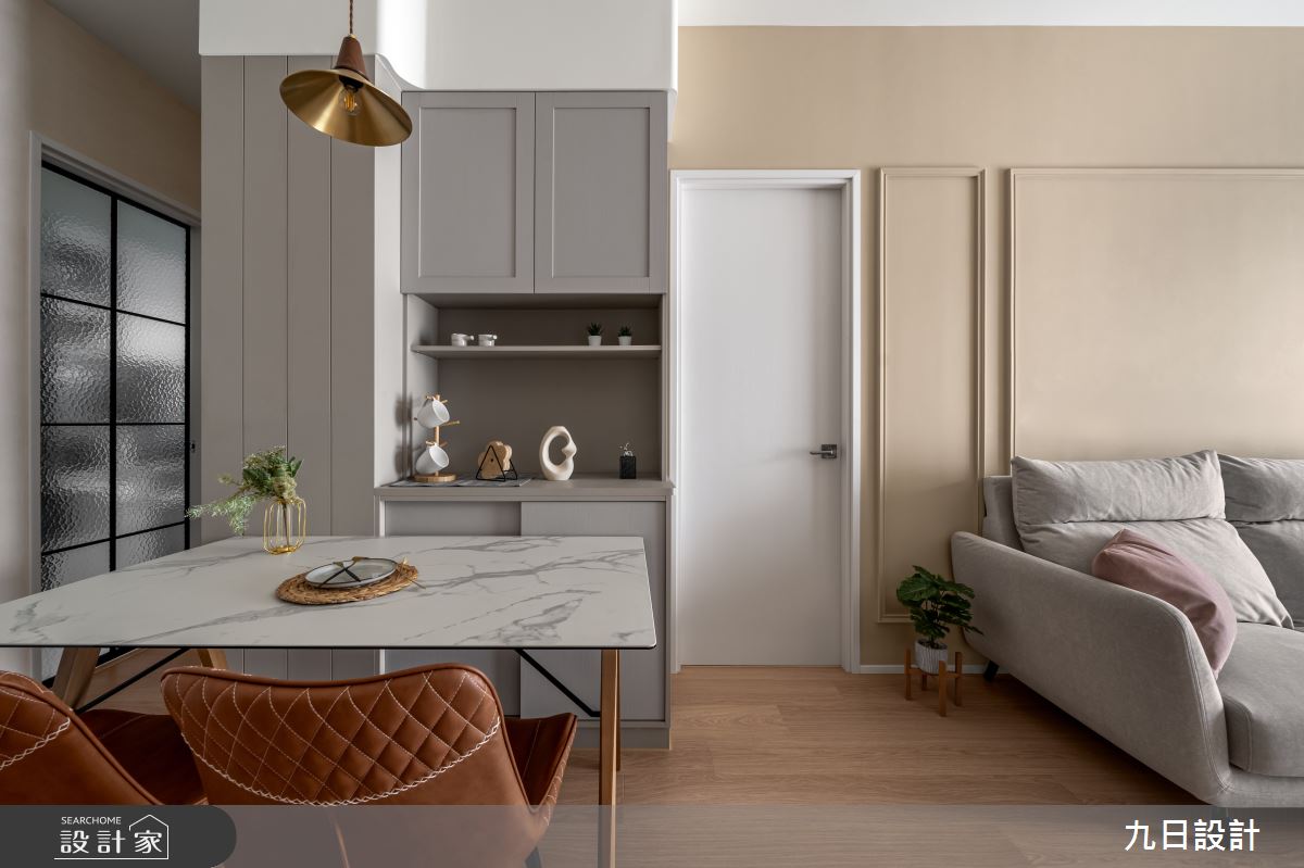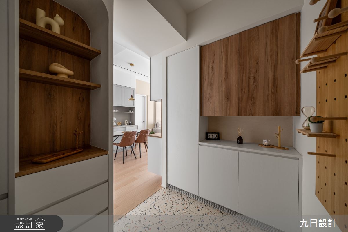 由九日設計精心規劃的18坪三房住宅空間,家庭成員一共有2位大人、1位小孩。因應屋主需求,設計師運用現代日式風作為主軸,搭配木作、系統板材、油漆、藝術塗料、玻璃、燈條、花磚,打造全家人的夢想家居。
