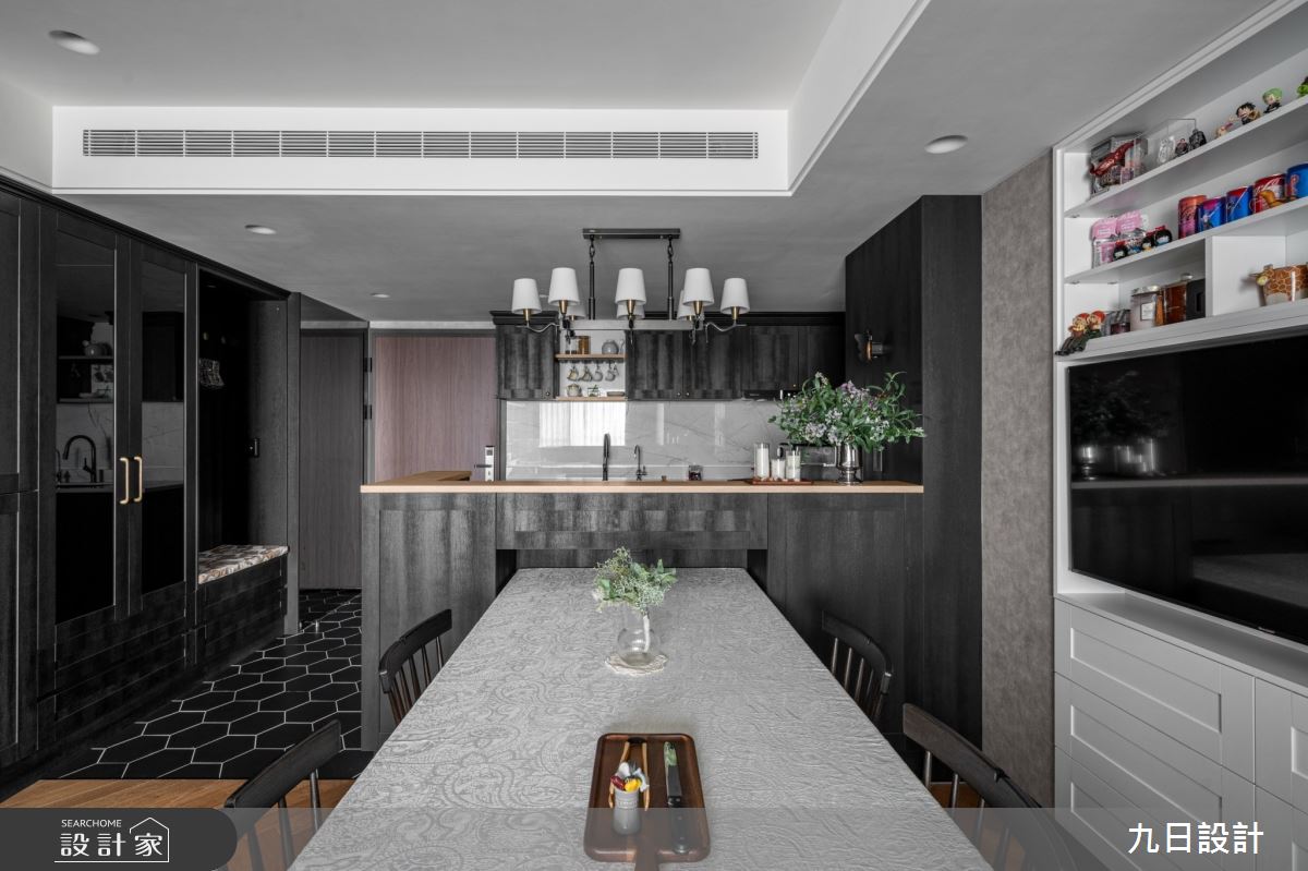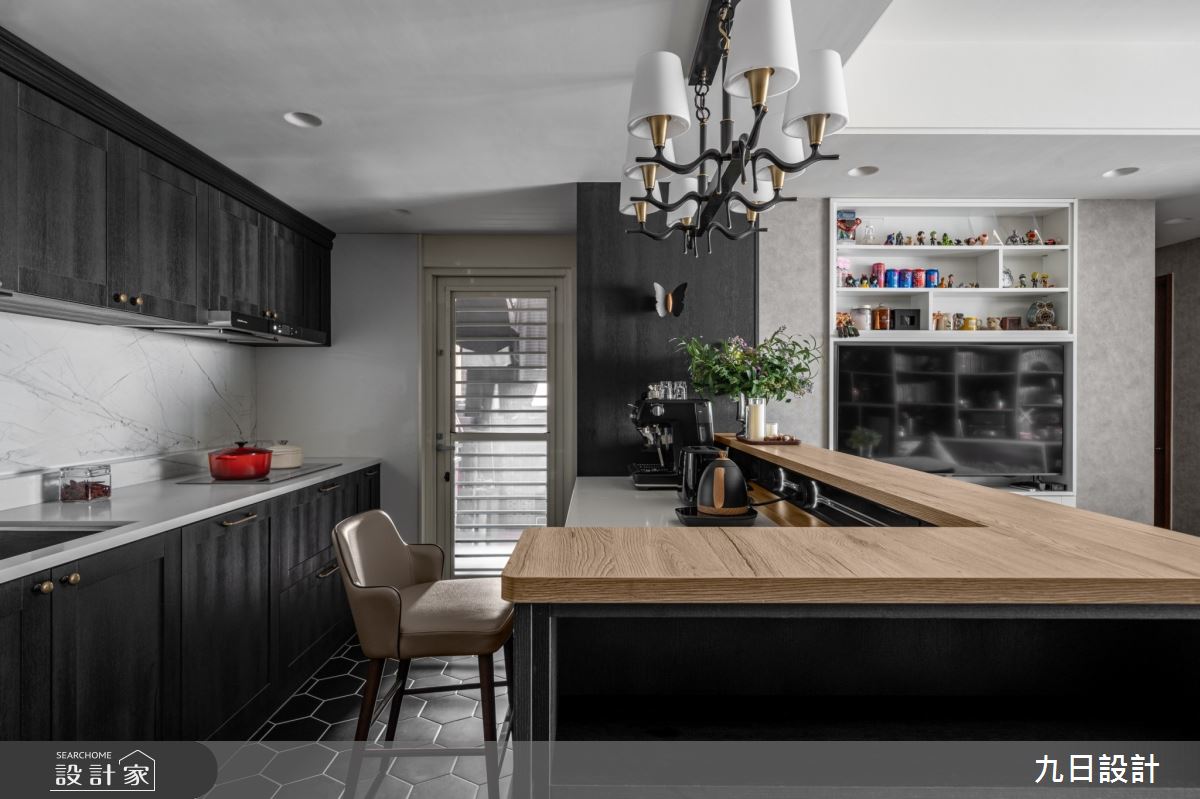 來自九日設計的26坪歌德鄉村風住宅案,屋主一家人共有2位大人、1位小孩,是一間單層新成屋(5年以下)的三房格局,設計師藉由建材以木作、系統櫃、六角磚、薄板磚、石英石、複合式實木人字拼、全室壁紙的搭配應用,實現一家人的理想生活。