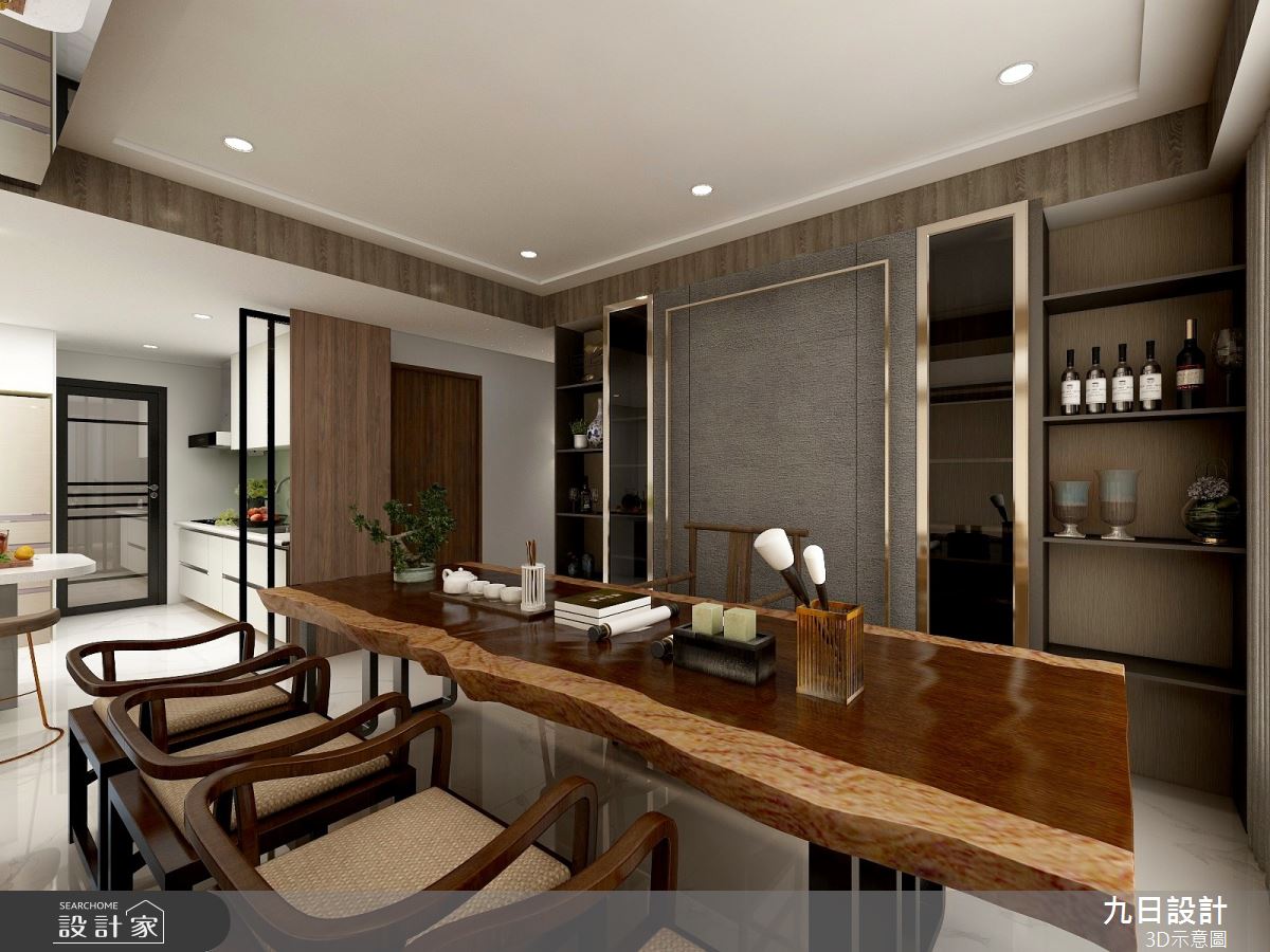 來自九日設計的72坪輕奢風住宅案,屋主一家人共有2位大人,是一間透天別墅新成屋(5年以下)的四房格局,設計師藉由建材以木作、系統櫃、特殊漆、玻璃、鐵件、鍍鈦、烤漆玻璃的搭配應用,實現一家人的理想生活。