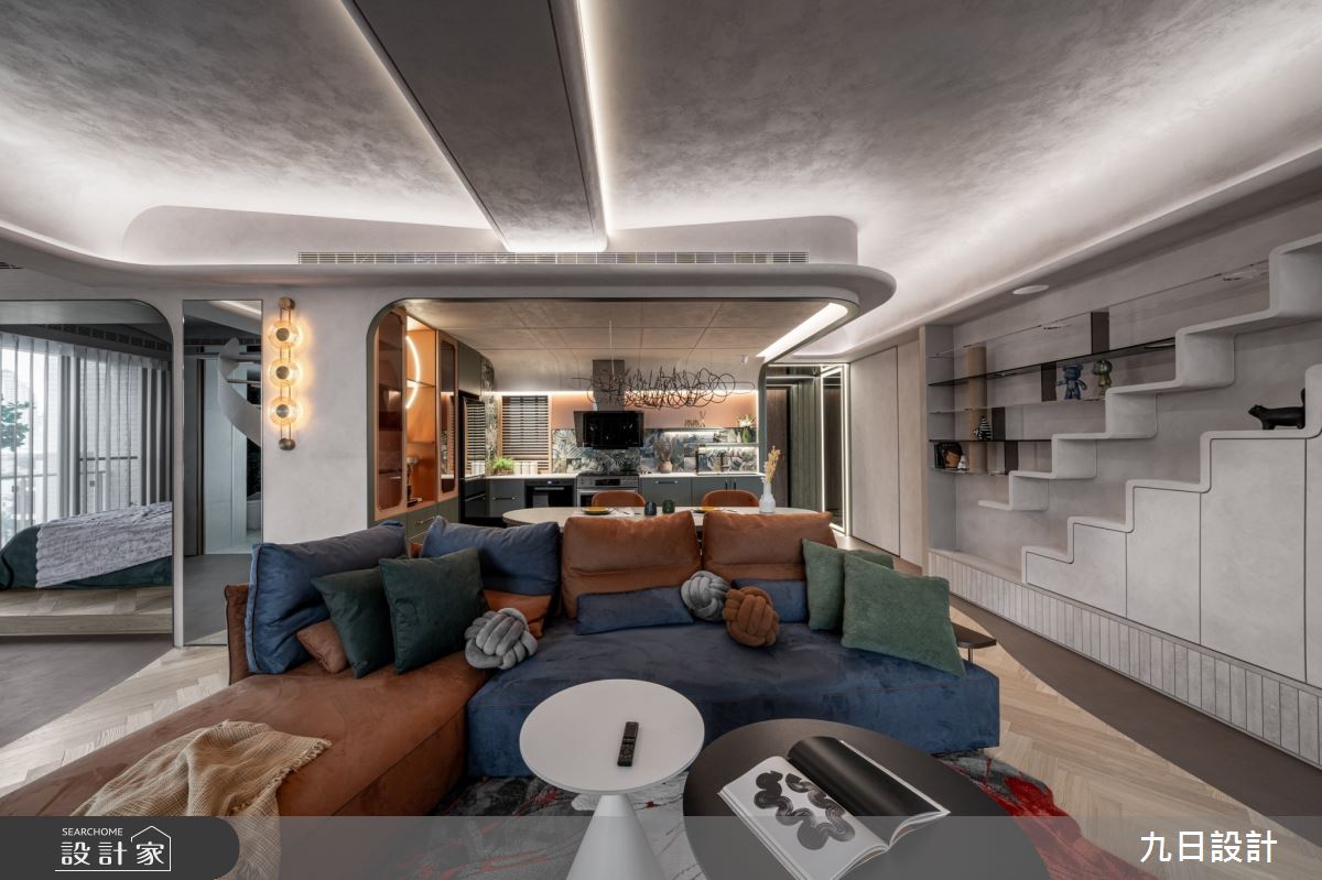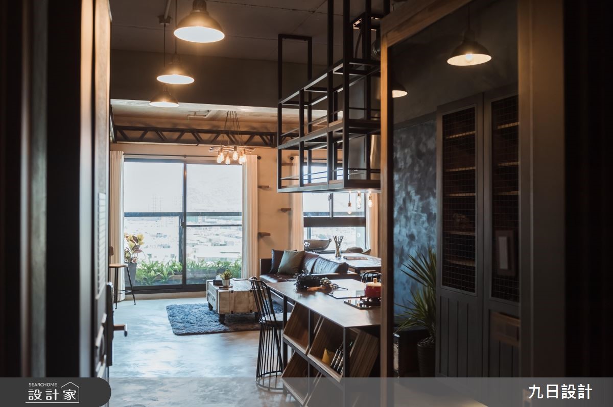 來自九日設計的25坪混搭風住宅案,屋主一家人共有2位大人,是一間單層毛胚屋的一房格局,設計師藉由建材以鐵件、大理石、藝術塗料、大板磚、進口壁紙、木作的搭配應用,實現一家人的理想生活。