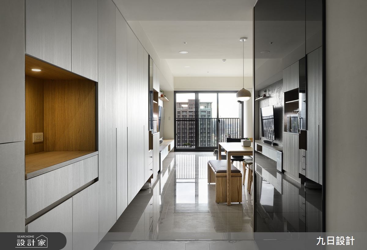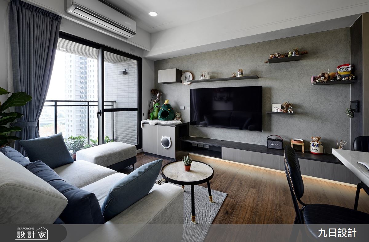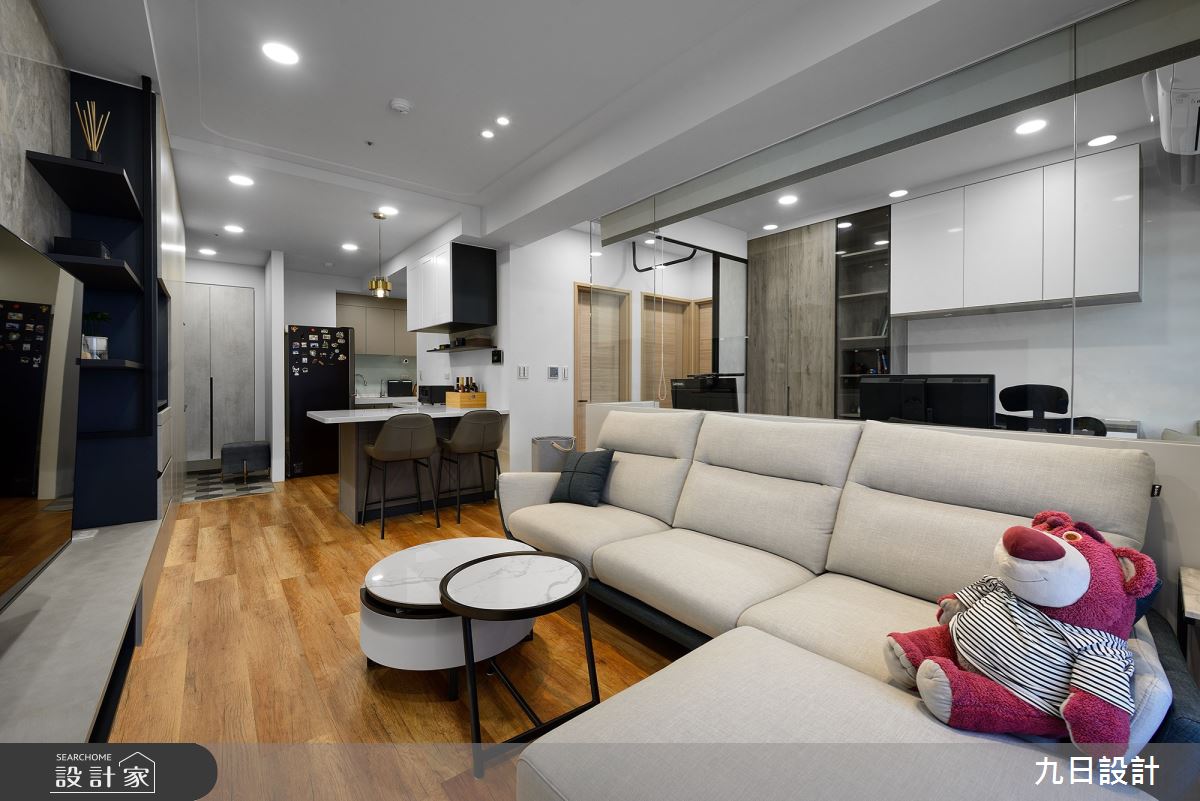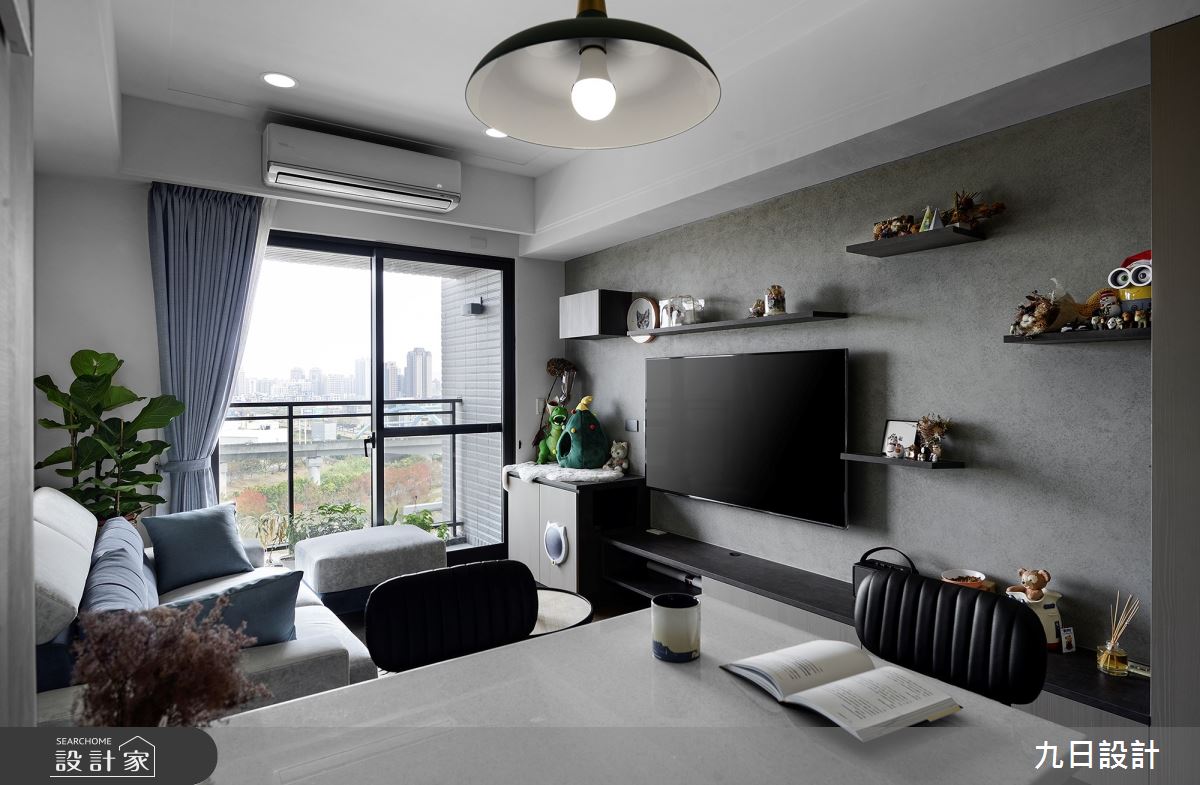 本案為九日設計的22坪混搭風新成屋(5年以下)設計作品,格局為單層兩房的居住空間。全室建材的搭配,應用系統櫃、木作、油漆、玻璃、鐵件,展現溫馨的居家氛圍。
