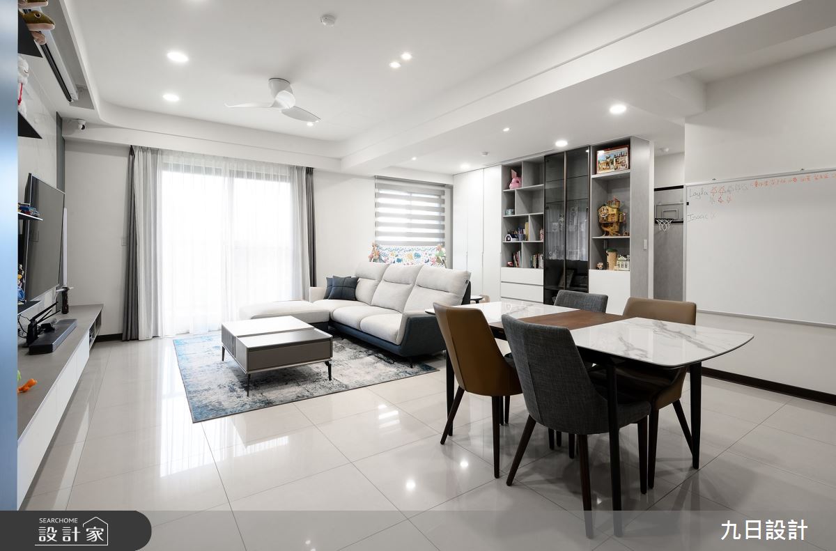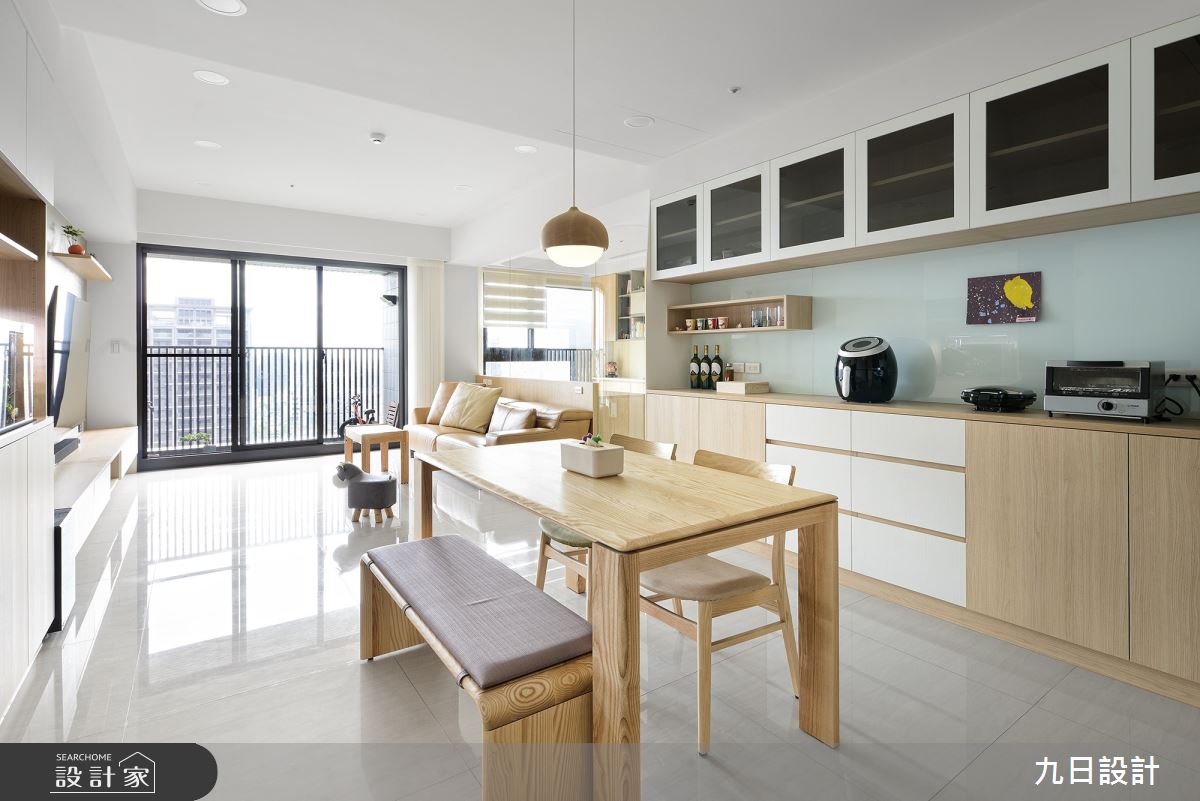 來自九日設計的28坪北歐風住宅案,屋主一家人共有2位大人、2位小孩,是一間單層新成屋(5年以下)的三房格局,設計師藉由建材以系統櫃、木作、油漆、藝術塗料、玻璃、鐵件的搭配應用,實現一家人的理想生活。