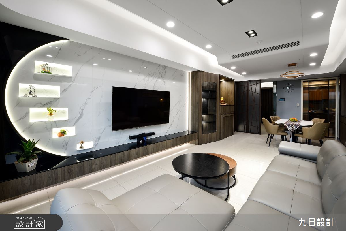 九日設計以木作、玻璃、油漆、藝術塗料、磁磚、燈光的搭配應用,呈現混搭風居家氛圍,將此間25坪、三房、單層、新成屋(5年以下)打造成舒適愜意的家庭空間,完成2位大人、2位小孩全家人的夢想之居。