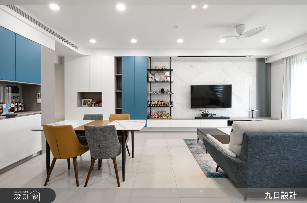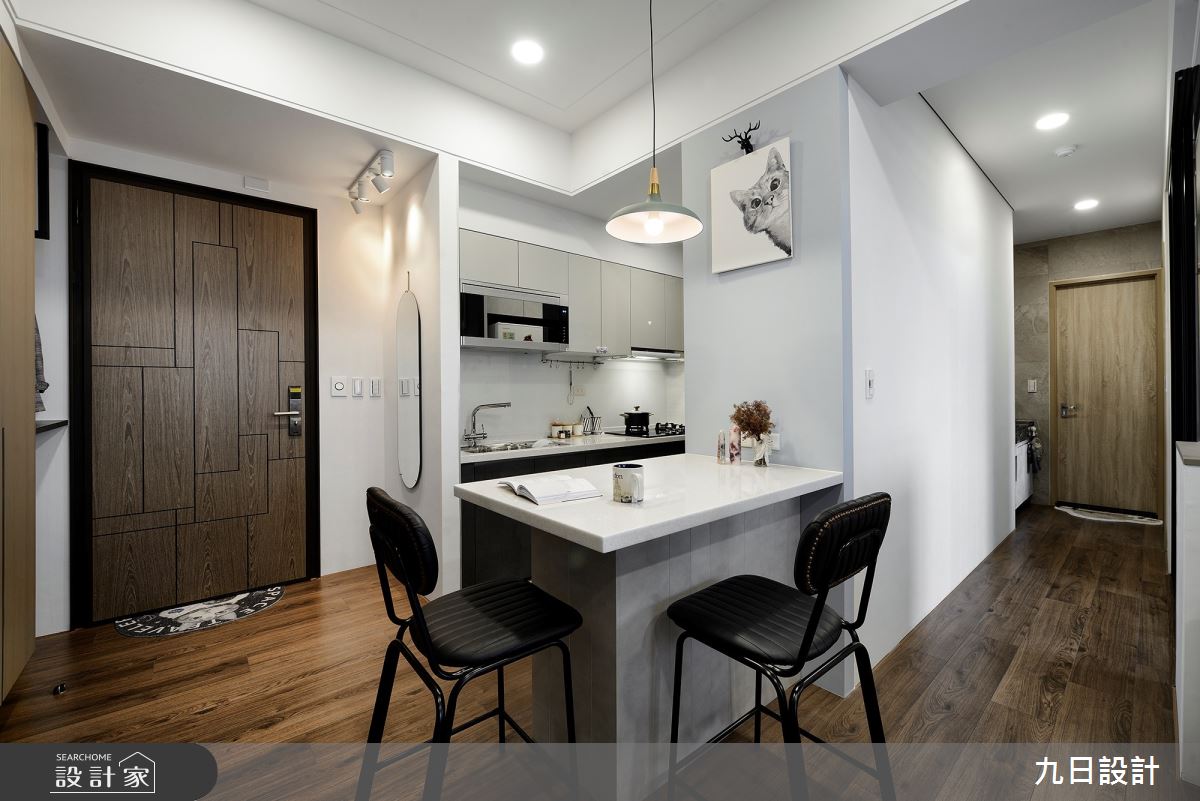 由九日設計精心規劃的22坪兩房住宅空間。因應屋主需求,設計師運用混搭風作為主軸,搭配系統櫃、木作、油漆、鐵件、人造石,打造全家人的夢想家居。