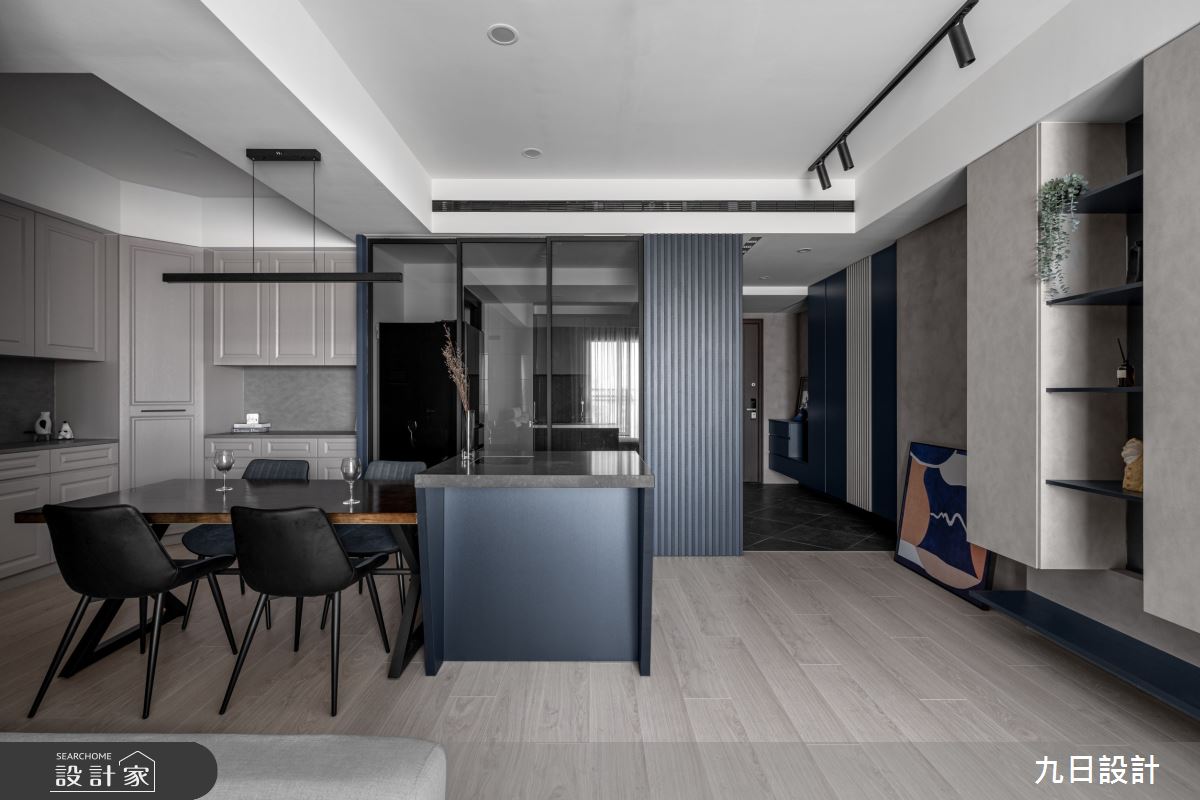 來自九日設計的22坪現代風住宅案,是一間單層新成屋(5年以下)的三房格局,設計師藉由建材以油漆、花磚、烤漆、木作、系統、薄板磚、鋁框門、燈條的搭配應用,實現一家人的理想生活。