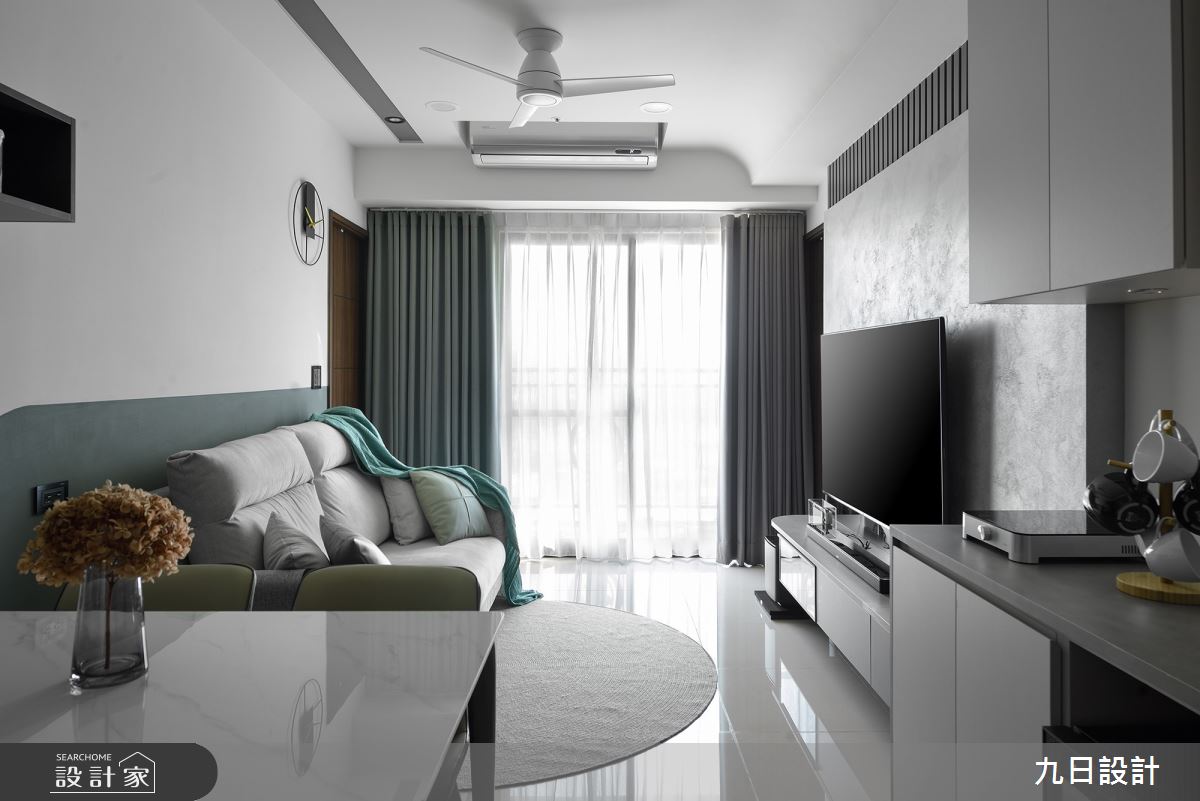 本案為九日設計的21坪現代風新成屋(5年以下)設計作品,格局為單層兩房的居住空間。全室建材的搭配,應用木作、系統櫃、藝術塗料、鐵件、玻璃,展現溫馨的居家氛圍。
