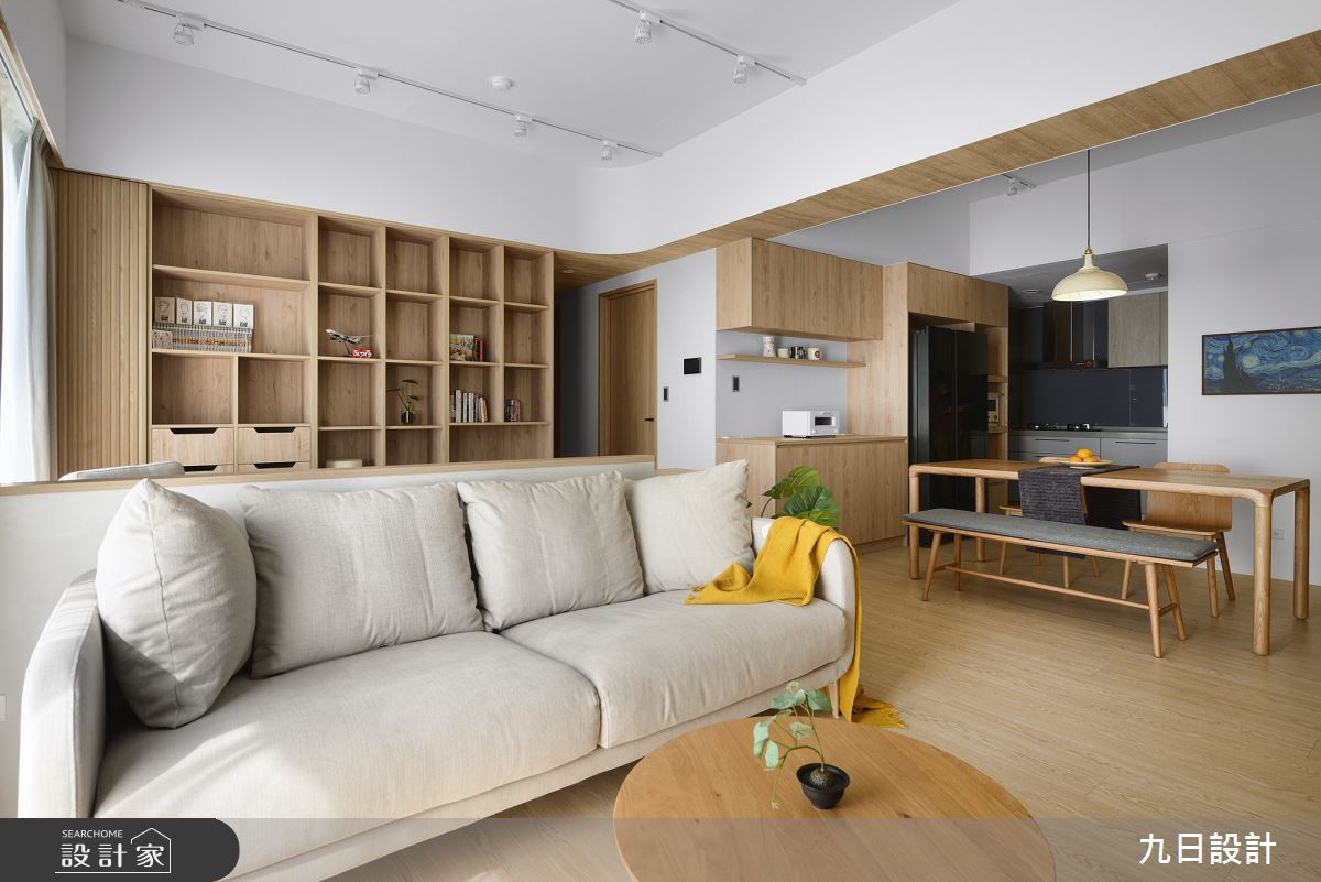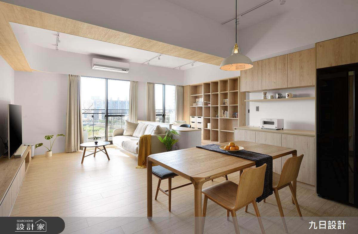 來自九日設計的23坪北歐風住宅案,屋主一家人共有2位大人,是一間單層新成屋(5年以下)的三房格局,設計師藉由建材以木作、系統櫃、油漆、玻璃、磁磚的搭配應用,實現一家人的理想生活。